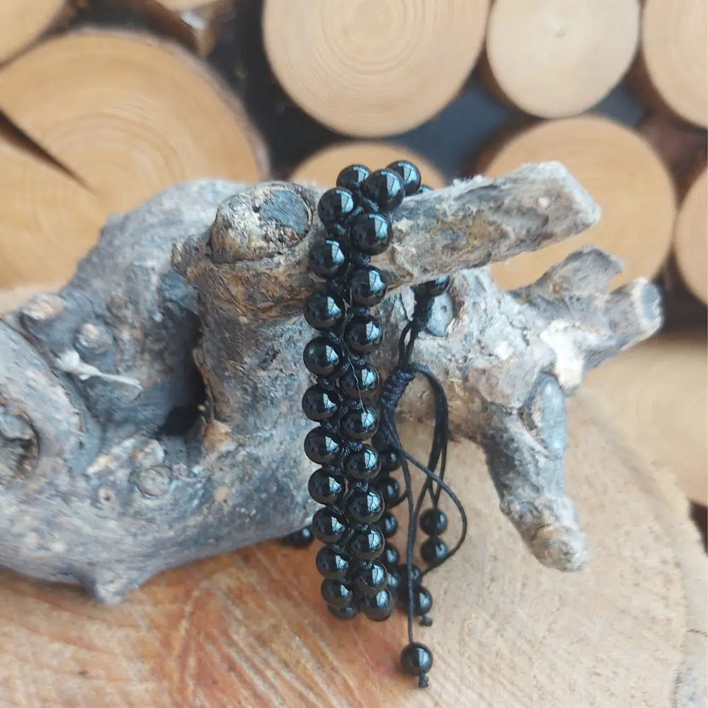 Das schwarze Achat Perlenarmband ist doppelreihig und verstellbar. Es hilft dir, Harmonie in deinem Leben zu erschaffen.