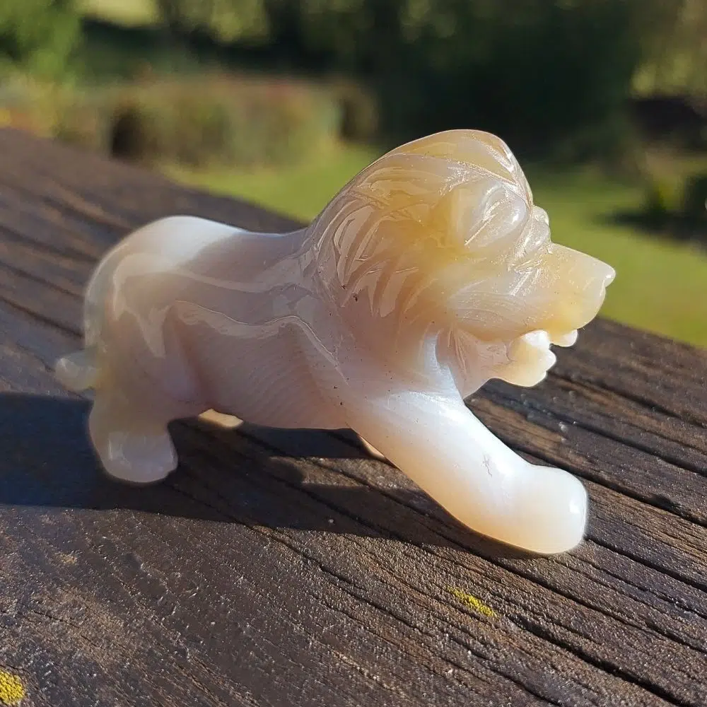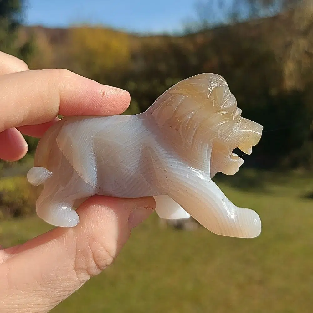 Dieser einzigartiger Achat Löwe steht für Mut, Stärke und Selbstbewusstein – wunderschön geschliffen!