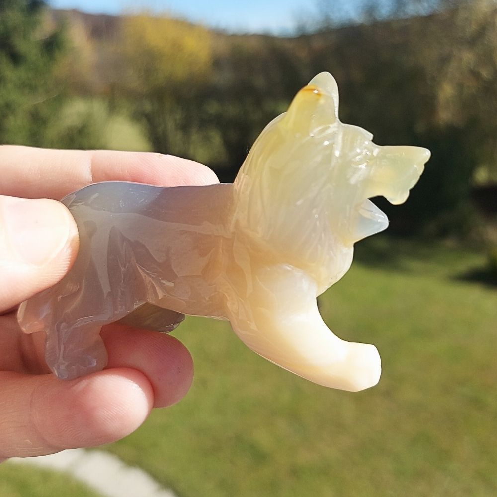 Dieser einzigartiger Achat Wolf unterstützt dich mit seinem Mut und seiner Kraft.