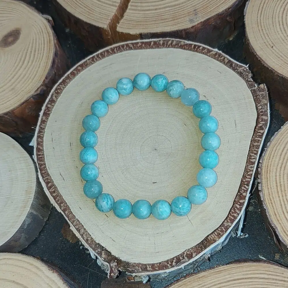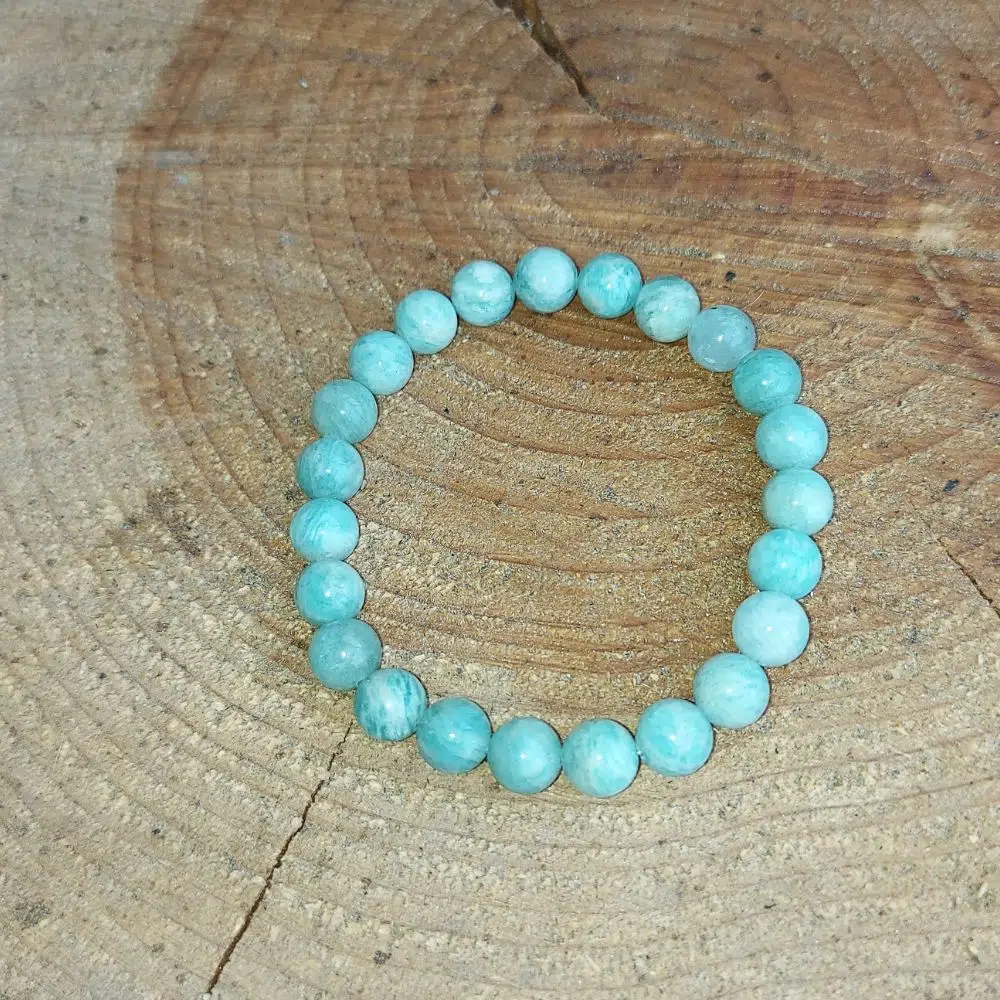 Dieses wunderschöne grüne Amazonit Armband (8 mm) ist dehnbar und fördert klare Gedanken.