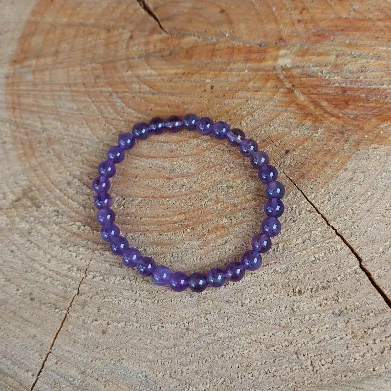 Das Amethyst Perlenarmband (6 mm) ist dehnbar und verstärkt deine Intuition und Wahrnehmung.