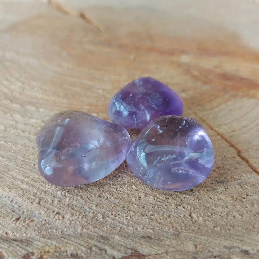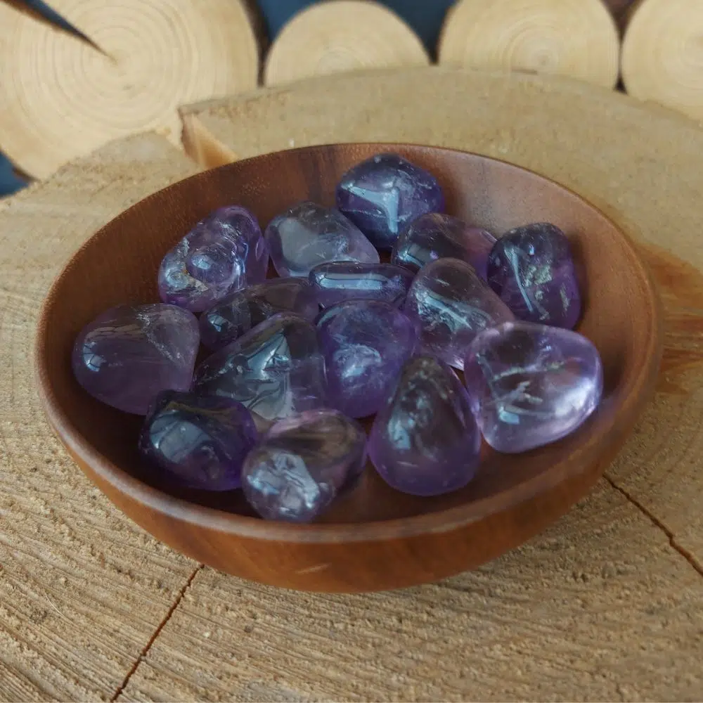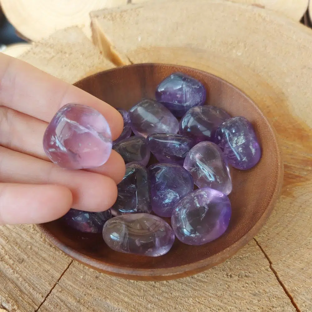 Diese Amethyst Trommelsteine kommen aus Brasilien.