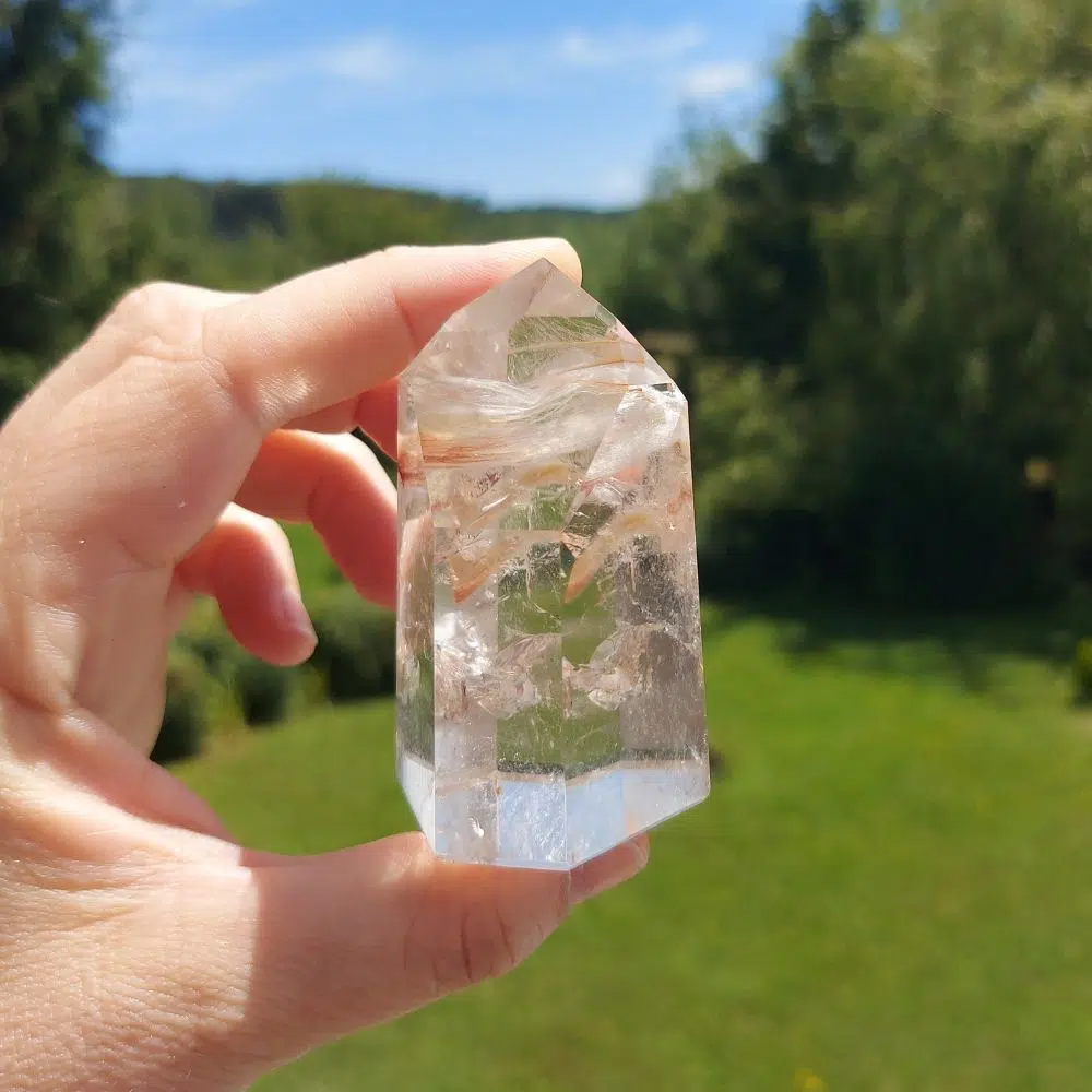 Amphibolquarz, auch bekannt als Engels-Phantomquarz, ist der „Stein der Gleichheit“, der alle Energien ins Gleichgewicht bringt. Er ist ein sehr seltener Heilstein aus Brasilien. Amphiboleinschlüsse bestehen meist aus (gelbem) Limonit, (rotem) Hämatit, (weißem) Kaolinit und (rosa) Lithium.