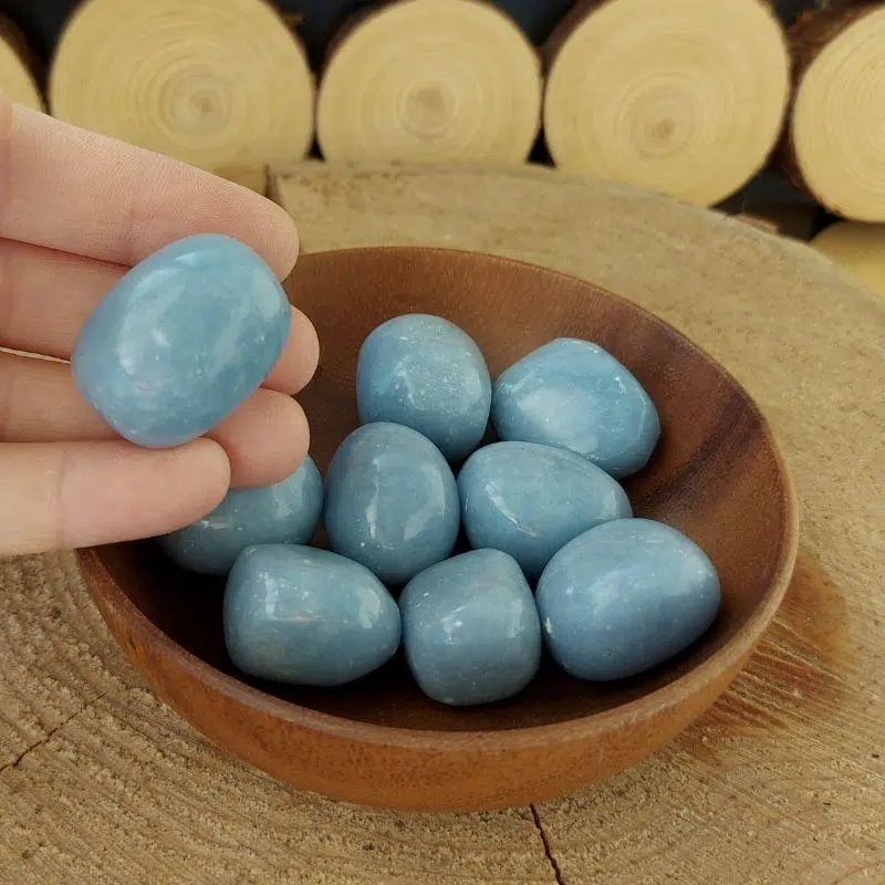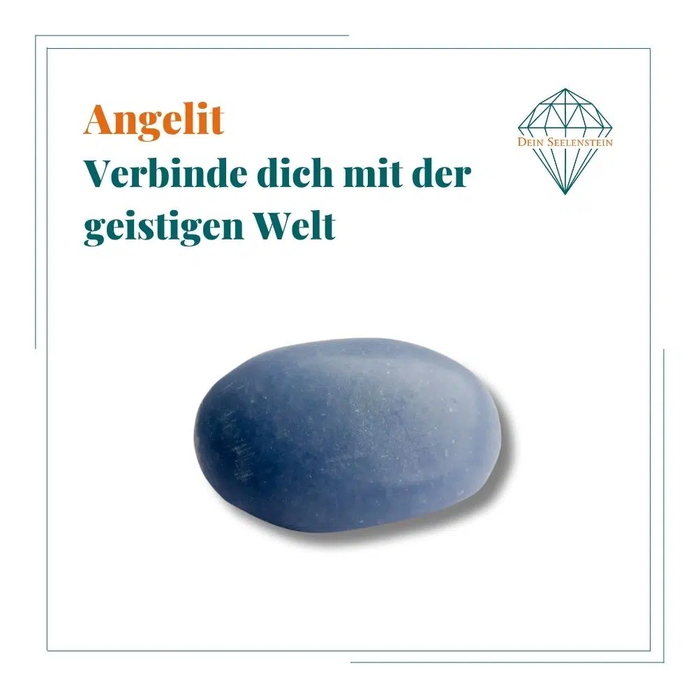 Angelit erhöht den Zustand des Bewusstseins. Er erleichtert den Kontakt mit deinen Geistführern und hilft dir, dich mit deinem höheren Selbst zu verbinden. Er unterstützt die spirituelle Energien der Kraft, der Heilung, der Liebe und des Schutzes. Die sanften blauen Farben des Angelit sind sehr beruhigend und tröstlich. Sie fördern eine himmlische Energie, die einen mit tiefem Frieden erfüllen wird.