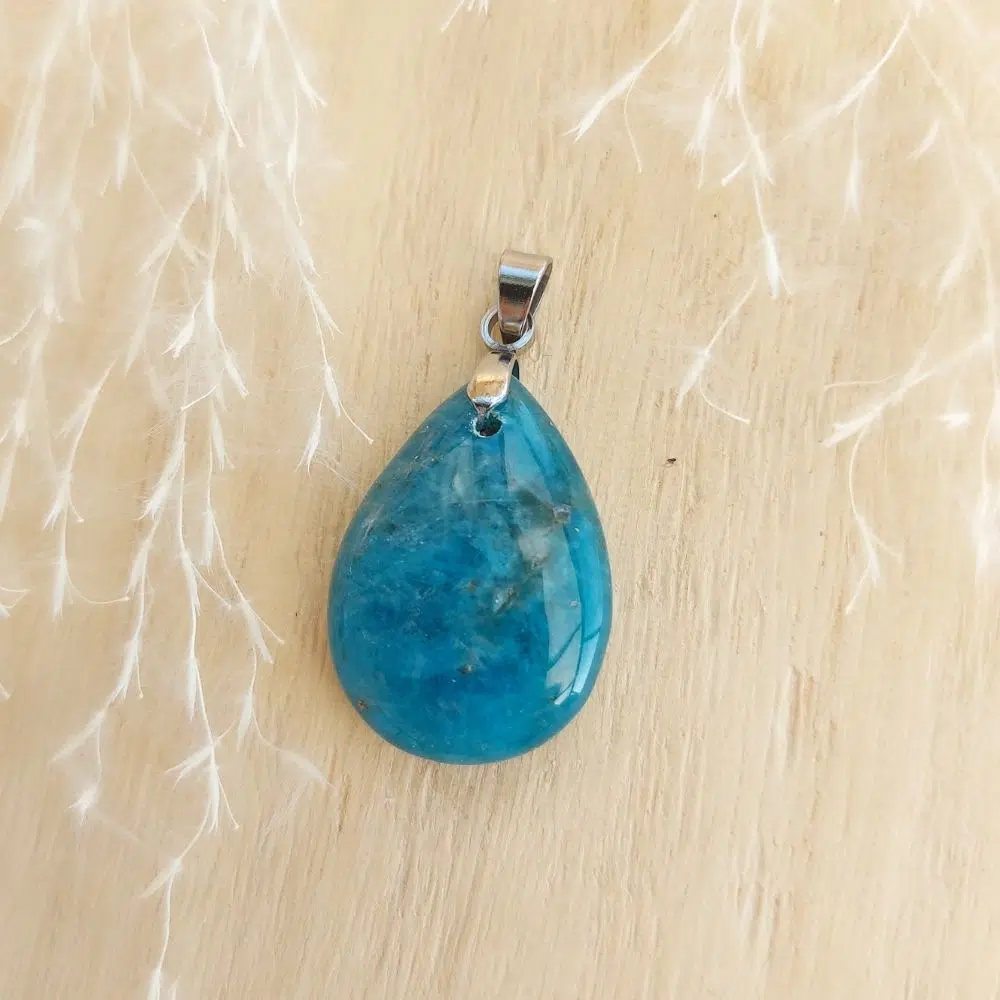 Dieser wunderschöne Apatit Anhänger hat eine Tropfenform und führt dich direkt zu deiner eigenen Wahrheit.