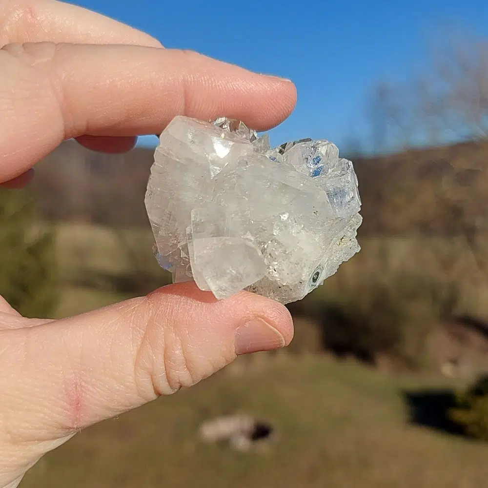 Ein hoch energetische Apophyllit Cluster aus Indien unterstützt dich dabei, dich mit den hohen Lichtschwingungen zu verbinden.