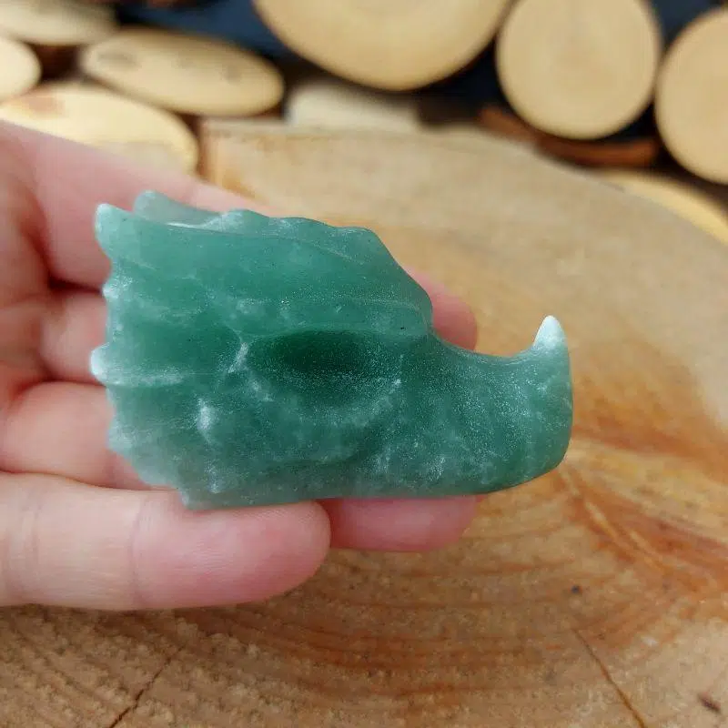 Ein Drachen aus grünem Aventurin – vielleicht fehlt dir dieser besondere Drachenkopf noch in deiner Sammlung? Kraftvoll und klar wirkt er – lass dich auf die Macht und Kraft der Heilsteine ein!