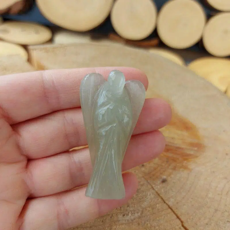 Ein bezaubender Engel aus grünem Aventurin – er hilft dir, Wohlstand und Optimismus in dein Leben zu bringen bzw. anzuziehen.