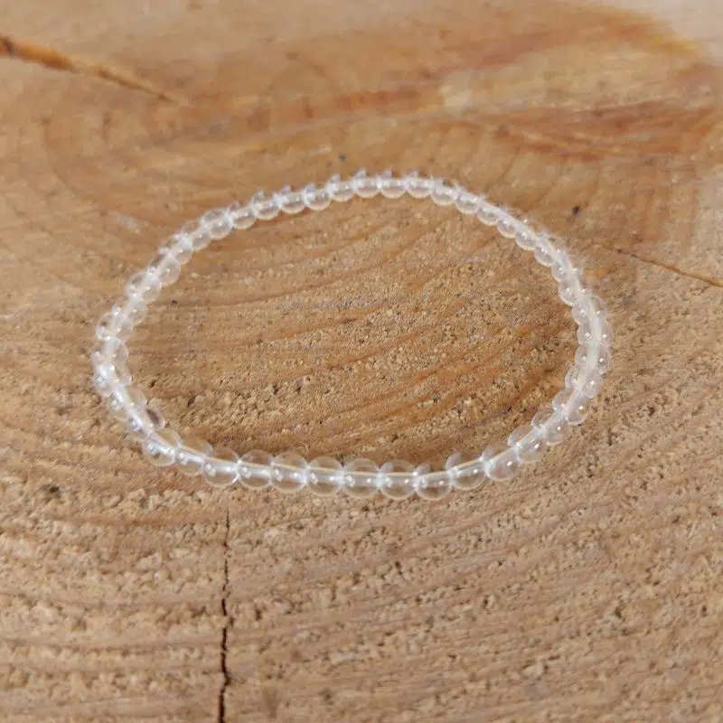 Diese bezaubernde Bergkristall Perlenarmband (4 mm) ist dehnbar und fördert deine Klarheit im Denken und Handeln.