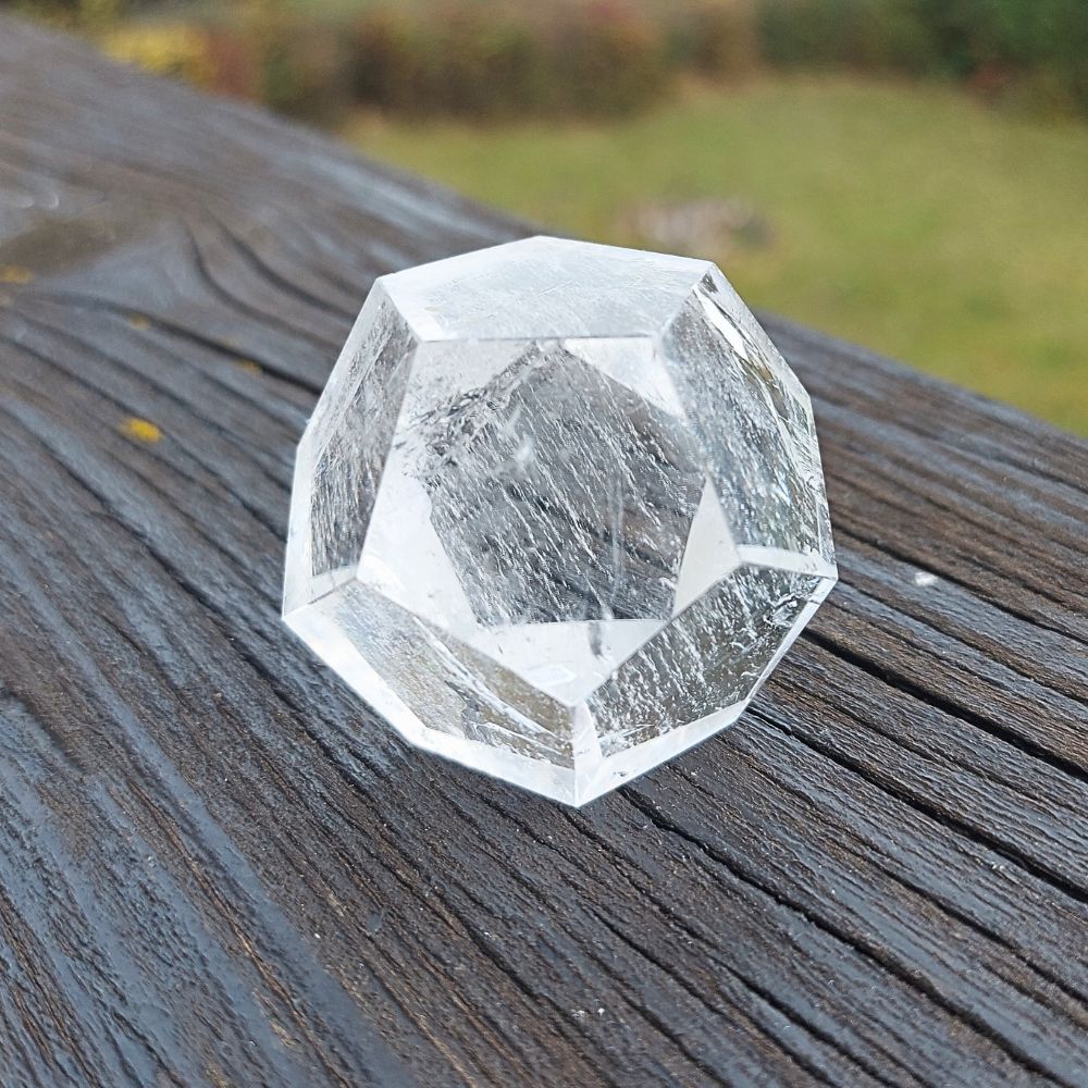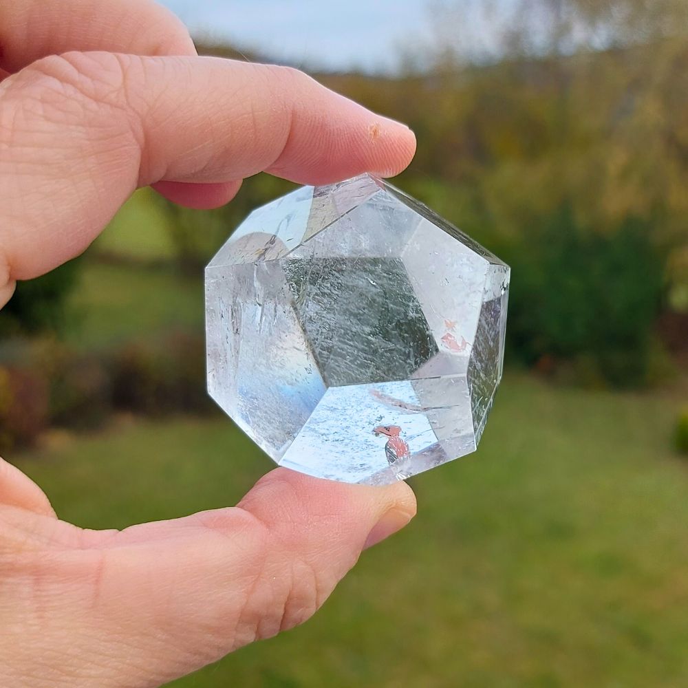 Dieser einzigartige Bergkristall hat die Form eines Dodekaeders und auch noch Regenbögen! Schnell zugreifen – hohe Schwingung!