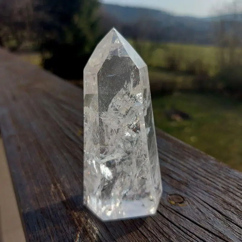 Dies ist ein Bergkristall mit sehr hoher Schwingung, der hilft, Licht und Dunkelheit auszugleichen, vergangene Leben zu heilen, die Manifestation zu unterstützen und bei Neuanfängen zu helfen.
