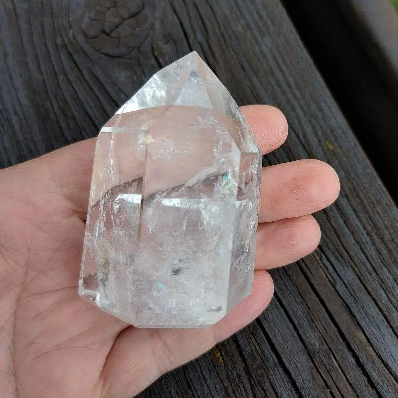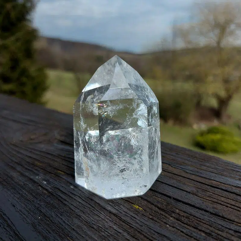 Feuer- und Eis Bergkristall (Regenbogenquarz) entsteht durch Erhitzung und anschließende rasche Abkühlung und besitzt die gegensätzlichen Energien von Feuer und Wasser, von hell und dunkel.