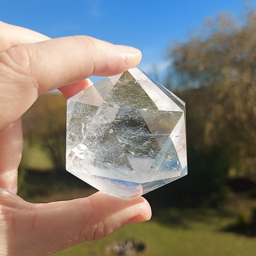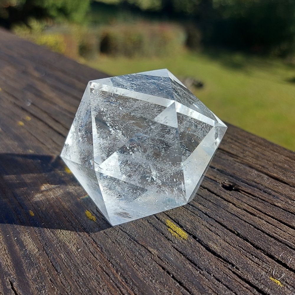 Der Ikosaeder steht spirituell für das Element Wasser und fördert dadurch Fluss, Hingabe und emotionale Heilung. Er stärkt das Sakralchakra, öffnet für Kreativität, Intuition und die Verbindung zum inneren Lebensfluss.