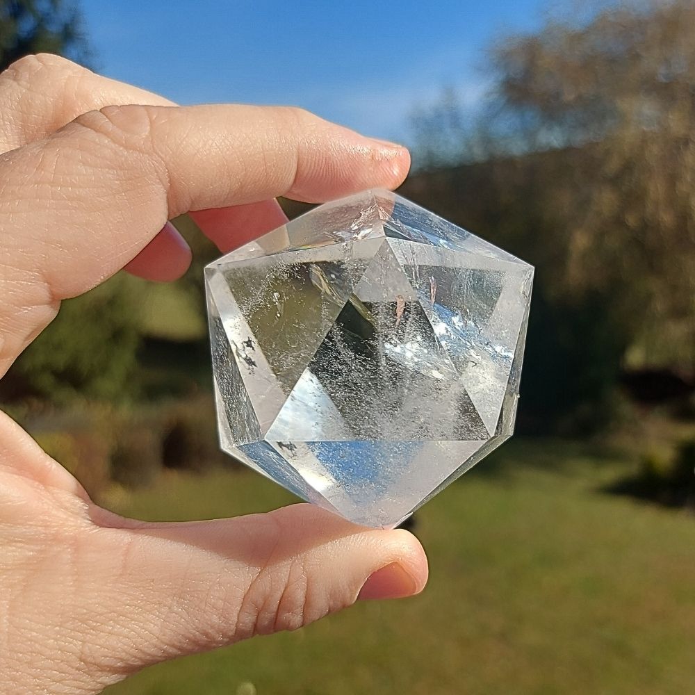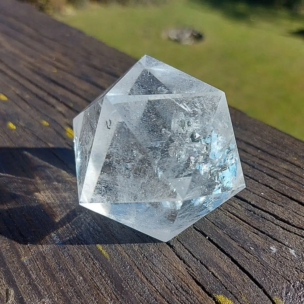 Dieser einzigartige Bergkristall hat die Form eines Ikosaeders und auch noch Regenbögen! Schnell zugreifen – hohe Schwingung!