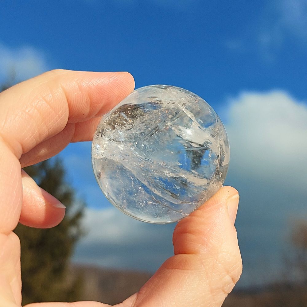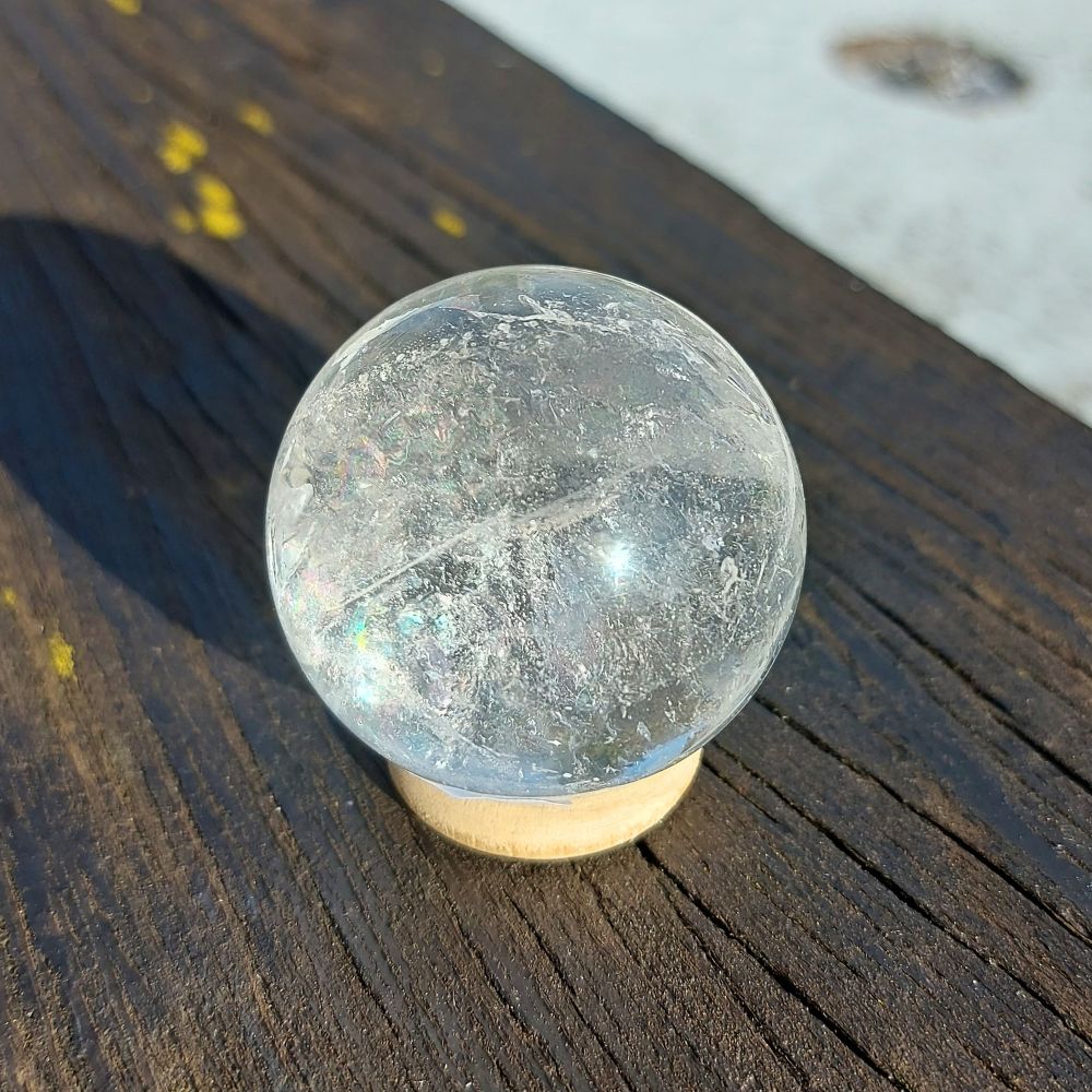 Kraftvolle klare Bergkristall Kugel mit Regenbogen für die Stärkung deiner Energie. Lass dich vom Inneren der Kugel in eine andere Welt mitnehmen!