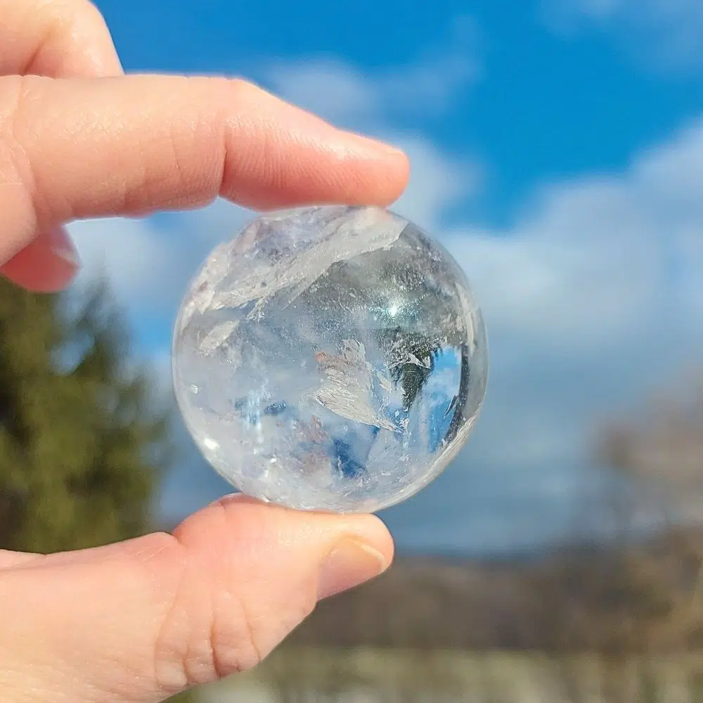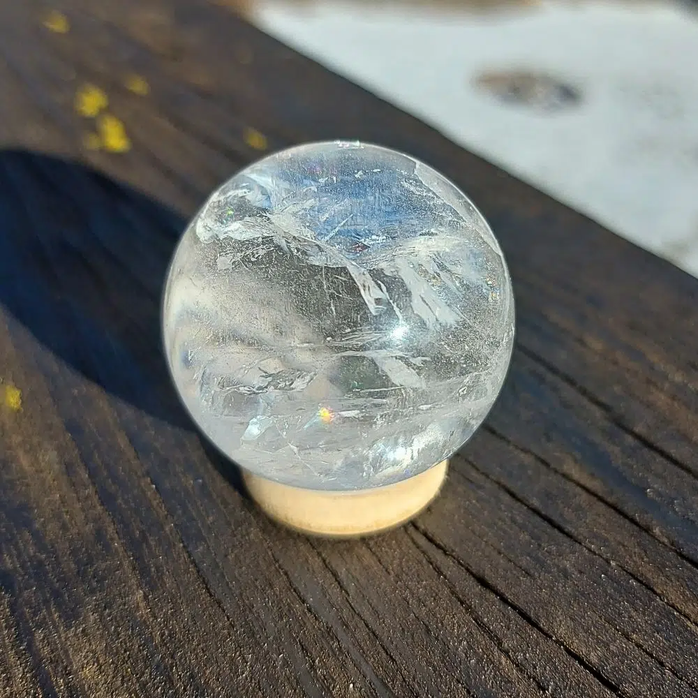 Außergewöhnliche klare Bergkristall Kugel mit Regenbogen für deine energetische Klarheit. Lass dich von der Kugel mit in eine andere Welt nehmen!