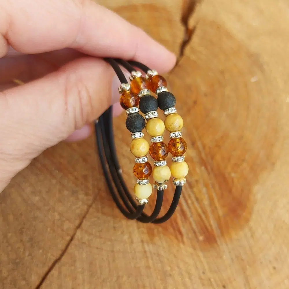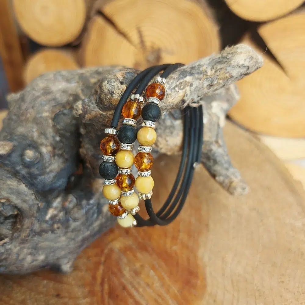 Wunderschönes Bernstein Armband mit hellen und dunklen Perlen – sehr praktisch, da verstellbar!