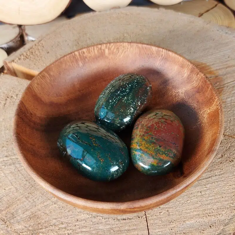 Blutstein, auch bekannt als Heliotrop, ist eine Art von Jaspis, bei dem die dunkelgrüne Farbe des Steins mit Rot gesprenkelt ist. Dies gibt das Aussehen von Blut auf einer grünen Oberfläche, woher er seinen Namen erhielt. Die Schwingung des Blutsteins fördert den Mut und unterstützt die Reinigung.
