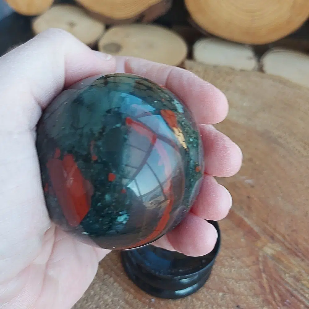 Blutstein, auch bekannt als Heliotrop, ist eine Art von Jaspis, bei dem die dunkelgrüne Farbe des Steins mit Rot gesprenkelt ist. Dies gibt das Aussehen von Blut auf einer grünen Oberfläche, woher er seinen Namen erhielt. Die Schwingung des Blutsteins fördert den Mut und unterstützt die Reinigung.