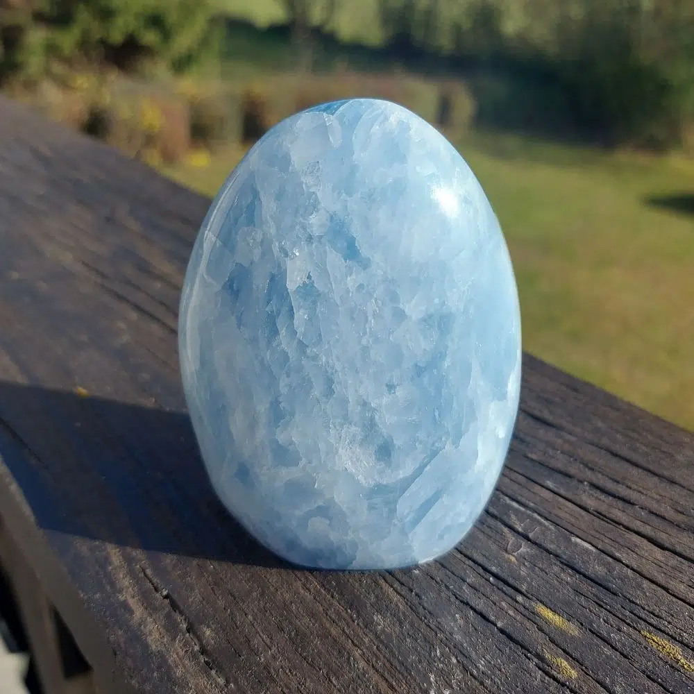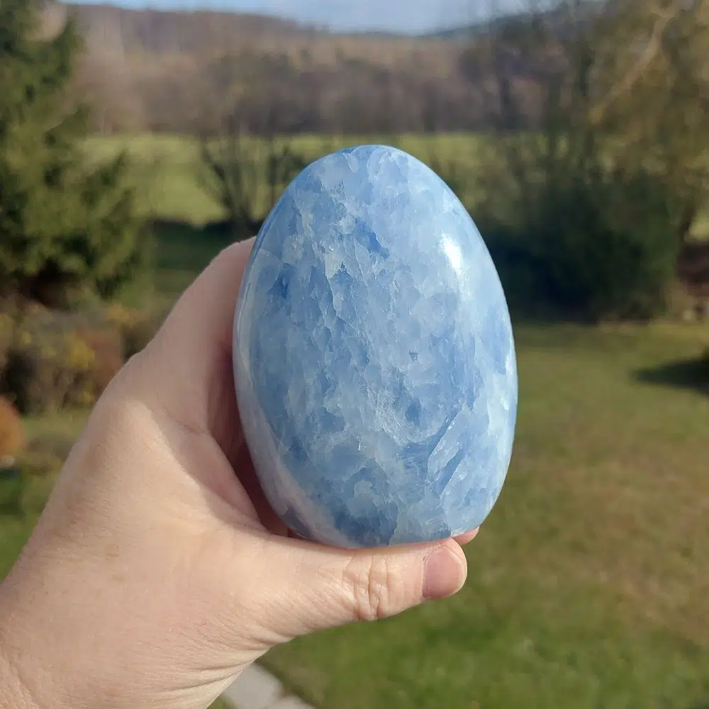 Dieser wunderschöne blaue Calcit kommt aus Madagskar und hilft dir, deine Ängste zu reduzieren und dich zu entspannen.