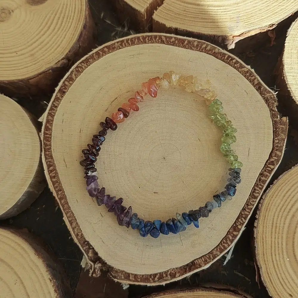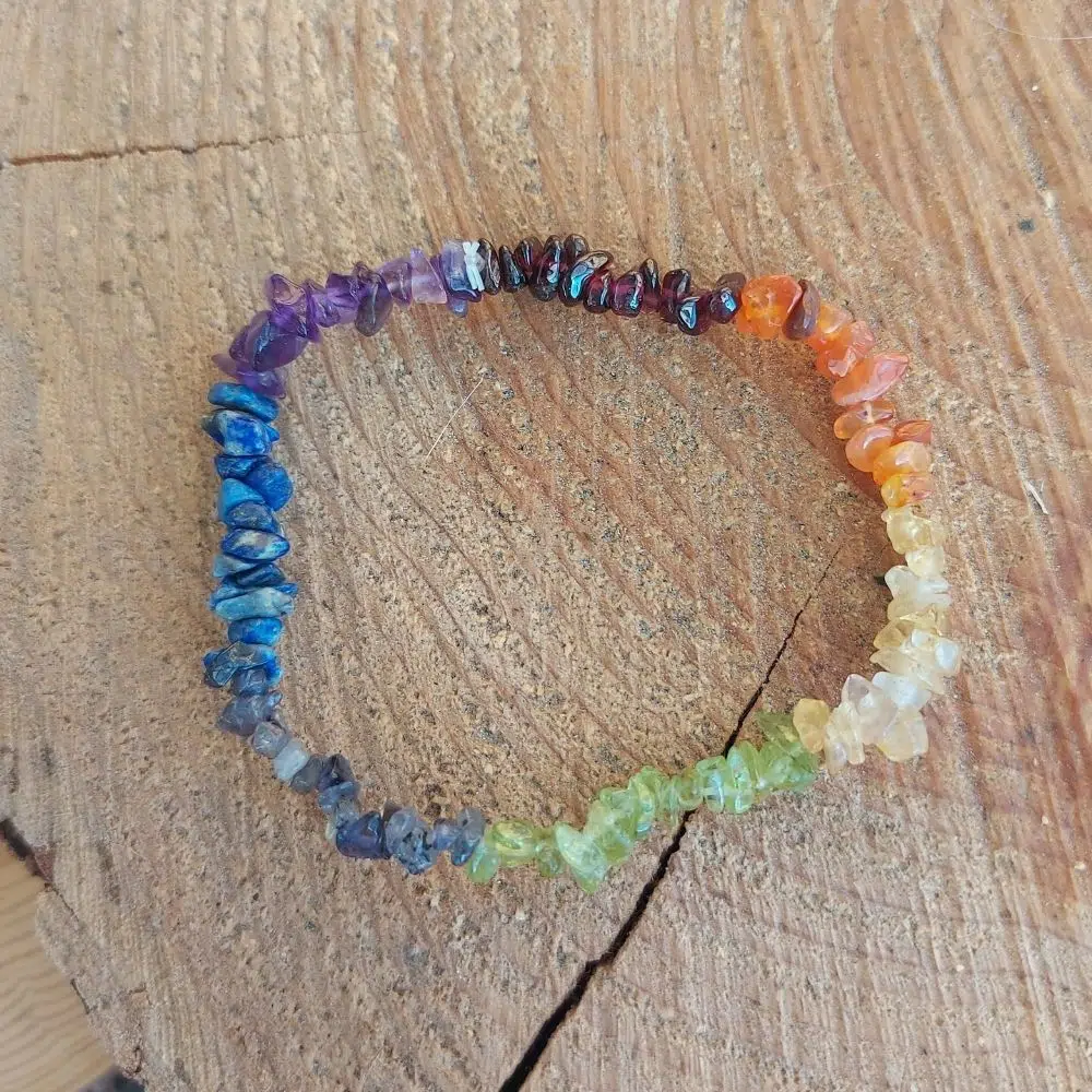 Dieses bezaubernde Chakra Splitterarmband besteht aus 7 Chakra Heilsteinen.