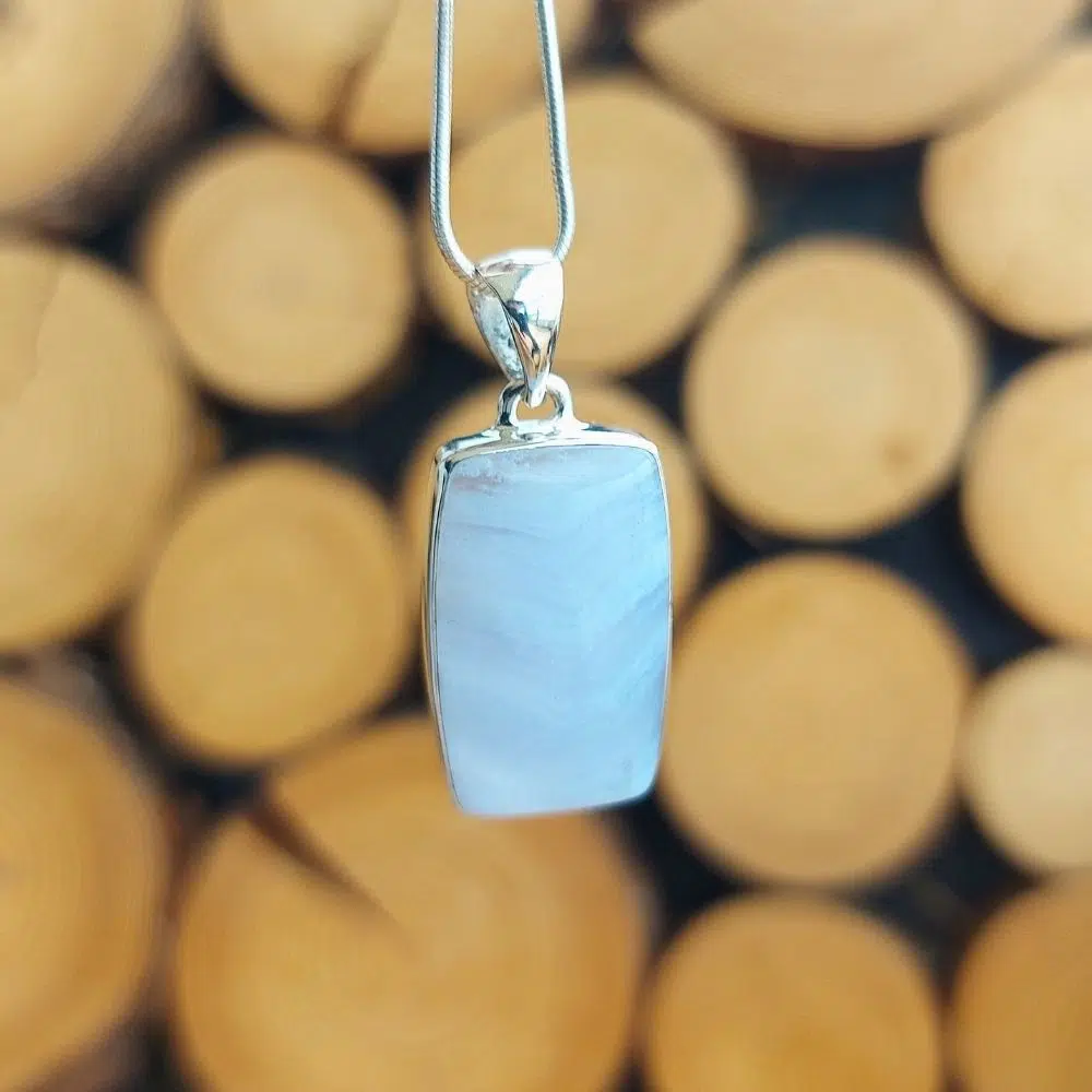 Dieser kraftvolle rechteckige Chalcedon Anhänger aus echtem Silber hilft dir dabei, deine innere Ruhe zu finden.