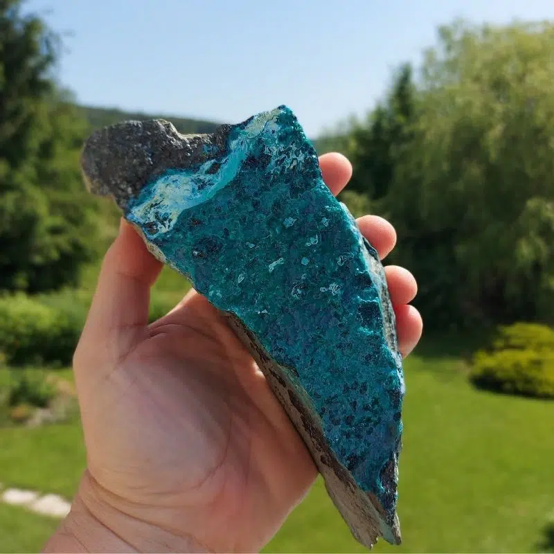 Chrysokoll ist ein blauer und grüner Stein, der aus einer einzigartigen Art von Kupfererz besteht.