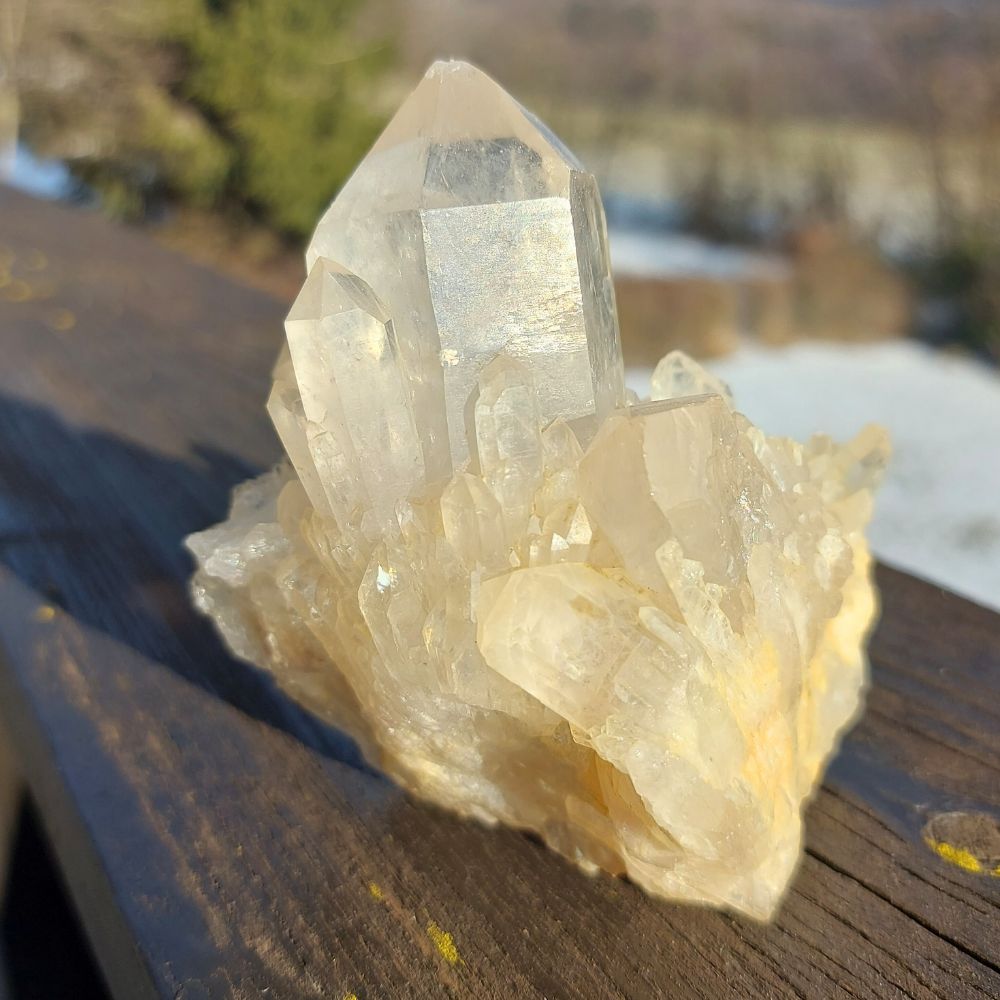 Der Citrin Cluster aus Lwena wird auch Kundalini Citrin genannt – da er dafür bekannt ist, die Lebensenergie wieder zu aktivieren und Blockaden zu lösen.