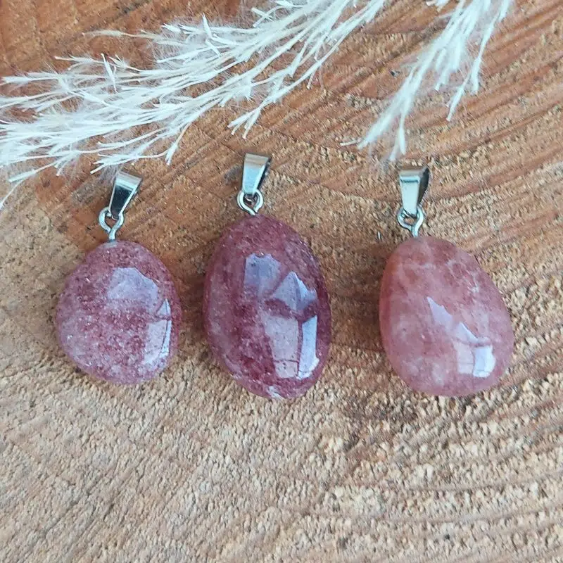 Seelenstein-Anhänger-Erdbeerquarz-Trommelstein-Tropfen