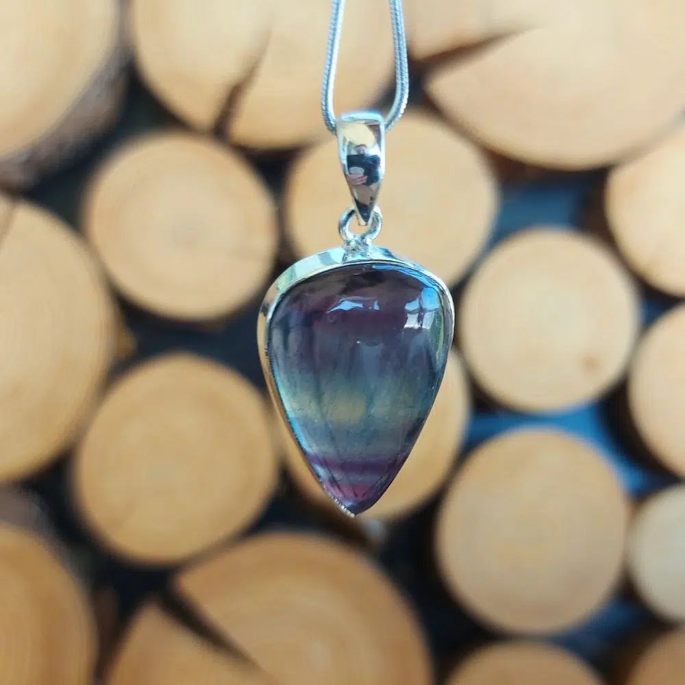 Der Regenbogen Fluorit Anhänger aus echtem Silber (925) ist genau der richtige Heilstein für dich zur Beruhigung deines Geistes.