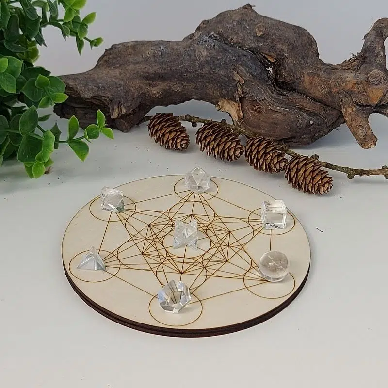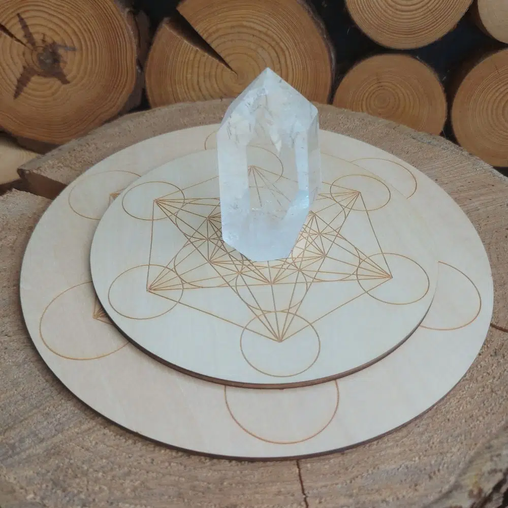 Mit dieser Holzscheibe kannst du ein Kristallgitter formen. Das Kristallgitter ist ein Werkzeug, das die Energie der Heilsteine mit der heiligen Geometrie verbindet. Ein Kristallgitter ist ein Muster, womit du deine Absicht verstärken kannst. Mit den Heilsteinen wird eine harmonische Beziehung zwischen den Energien, Formen und Farben der einzelnen Kristalle erschaffen.