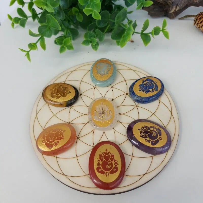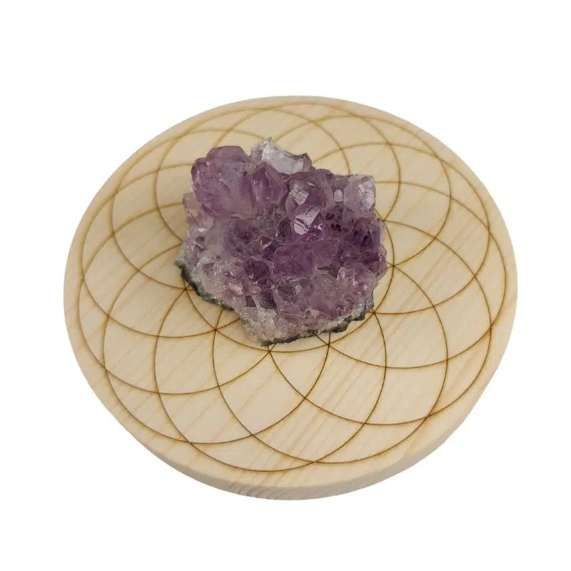 Mit dieser Holzscheibe kannst du ein Kristallgitter formen. Das Kristallgitter ist ein Werkzeug, das die Energie der Heilsteine mit der heiligen Geometrie verbindet. Ein Kristallgitter ist ein Muster, womit du deine Absicht verstärken kannst. Mit den Heilsteinen wird eine harmonische Beziehung zwischen den Energien, Formen und Farben der einzelnen Kristalle erschaffen.