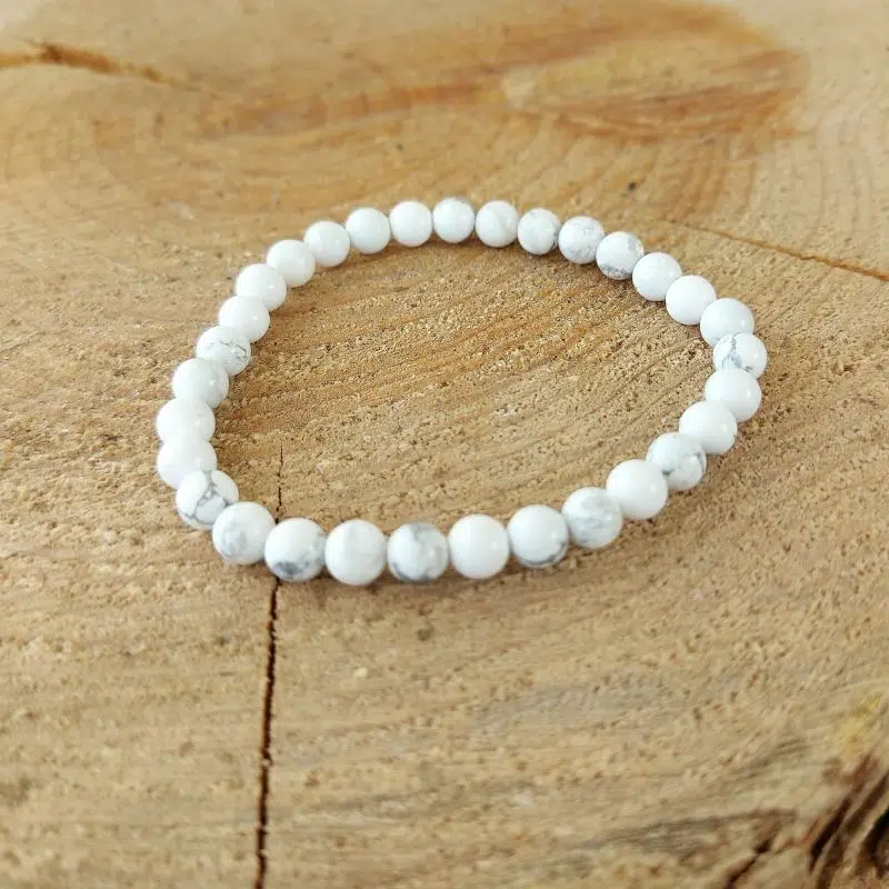 Dieses ausgleichende Howlith Perlenarmband (6 mm) ist dehnbar und beruhigt deinen Geist.