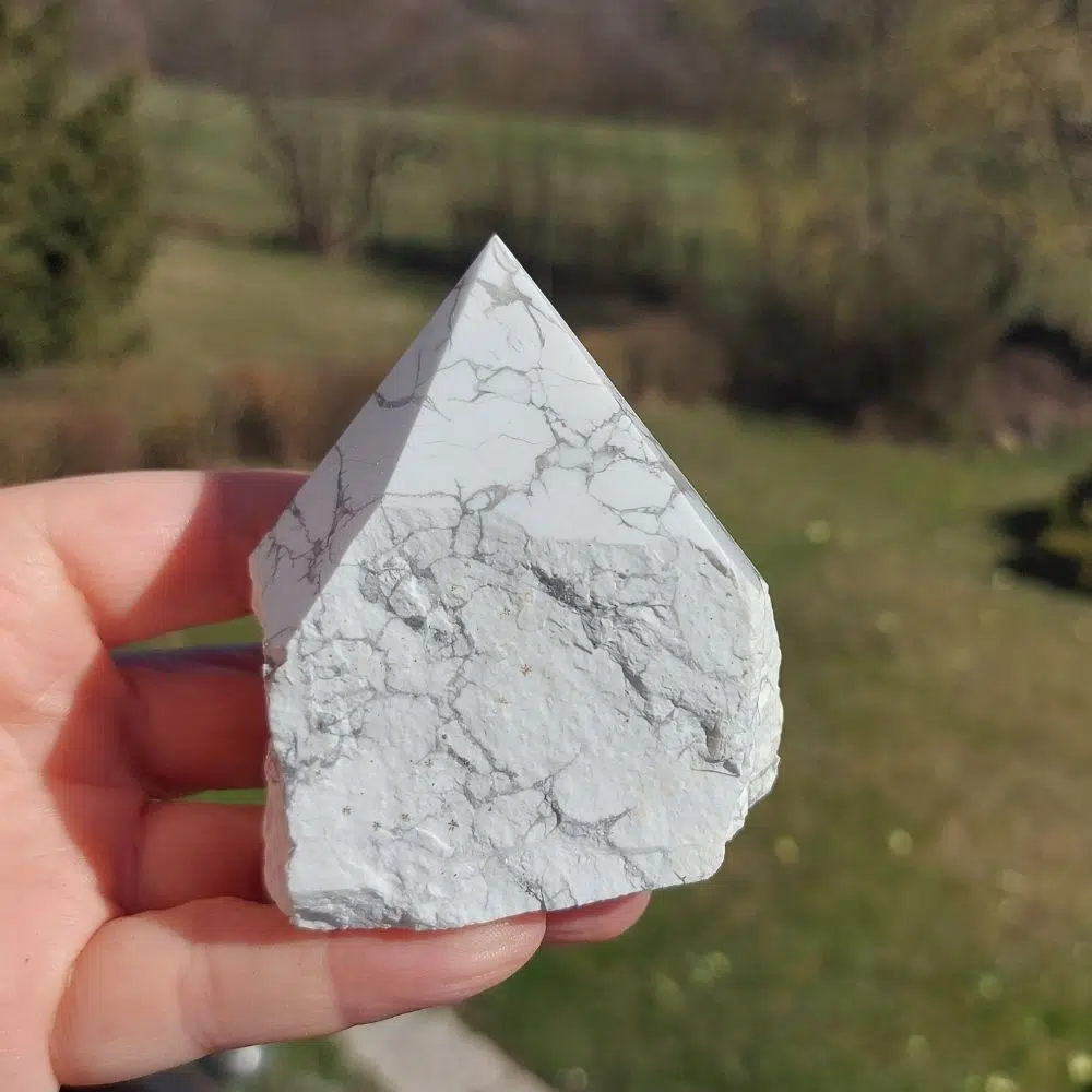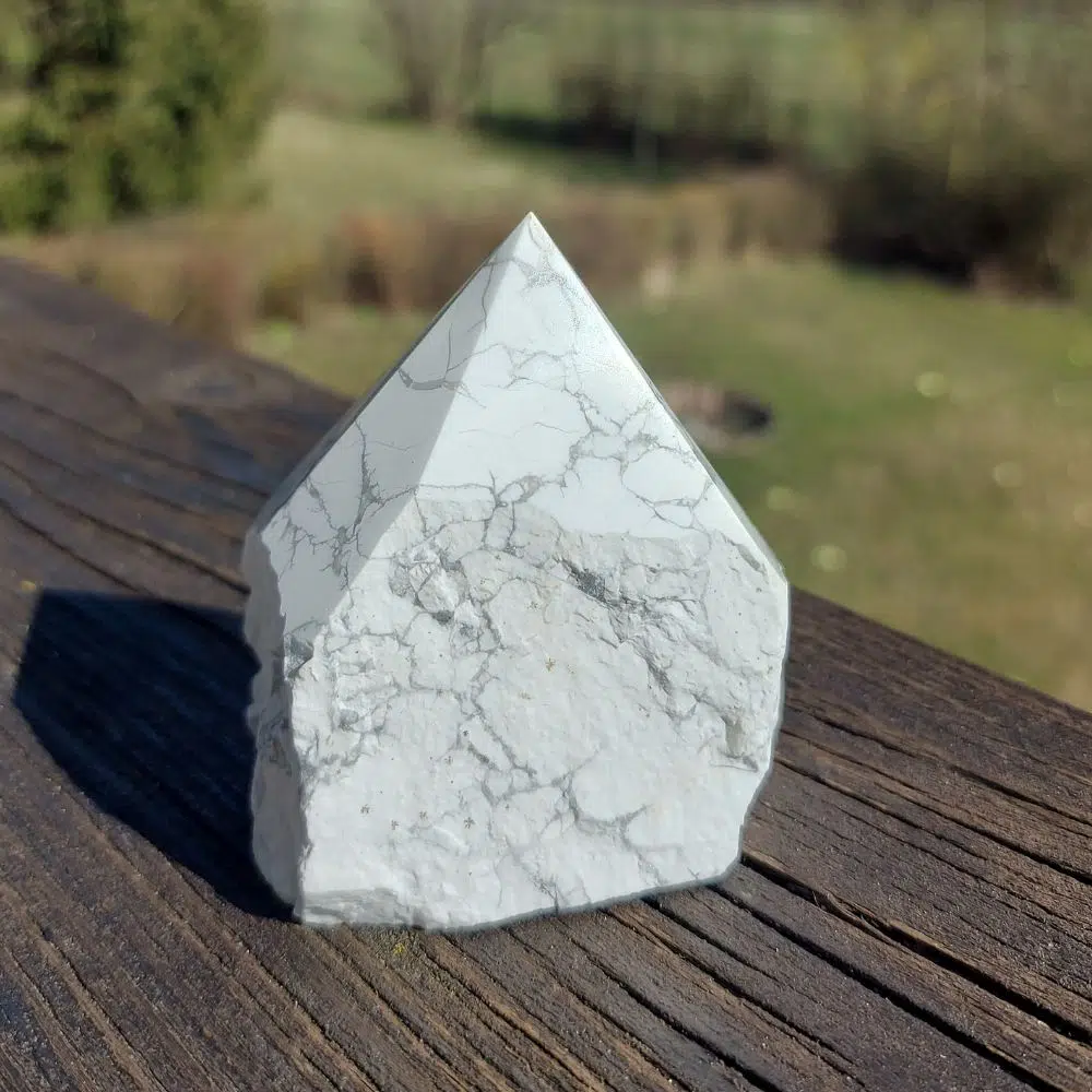 Diese besonders kraftvolle Howlith Spitze ist halbpoliert (Rohstein & Spitze) und erdet deine gesamte Energie und ermöglicht es deinem Geist, ein Gefühl der Klarheit zu erhalten. Das Selbstvertrauen beginnt zu steigen, aber auch die innere Stärke beginnt wieder zu erwachen. Howlith ist ein wunderschöner weißer Stein, der die spirituellen Qualitäten von Gelassenheit, Behutsamkeit und Aufgeschlossenheit repräsentiert.
