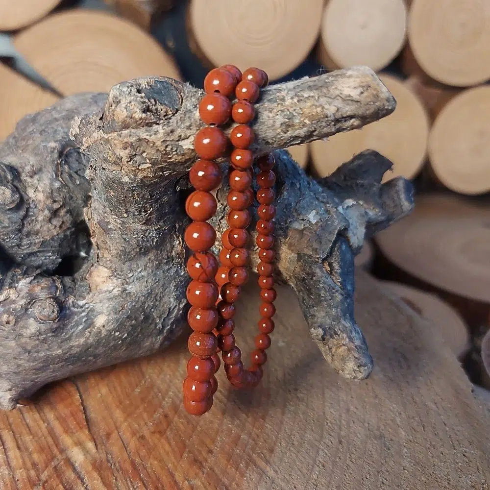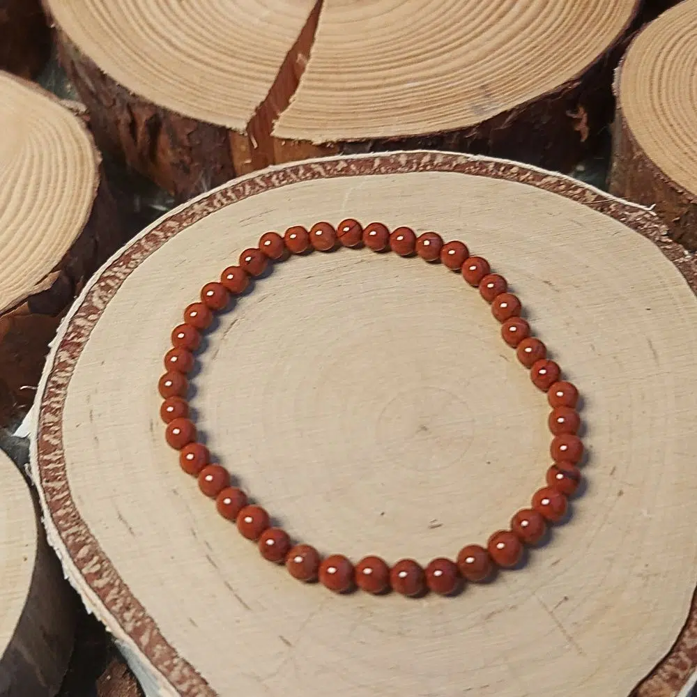 Dieses wunderschöne rote Jaspis Perlenarmband (4 mm) ist dehnbar und erhöht dein Selbstvertrauen bringt dich zum Handeln.