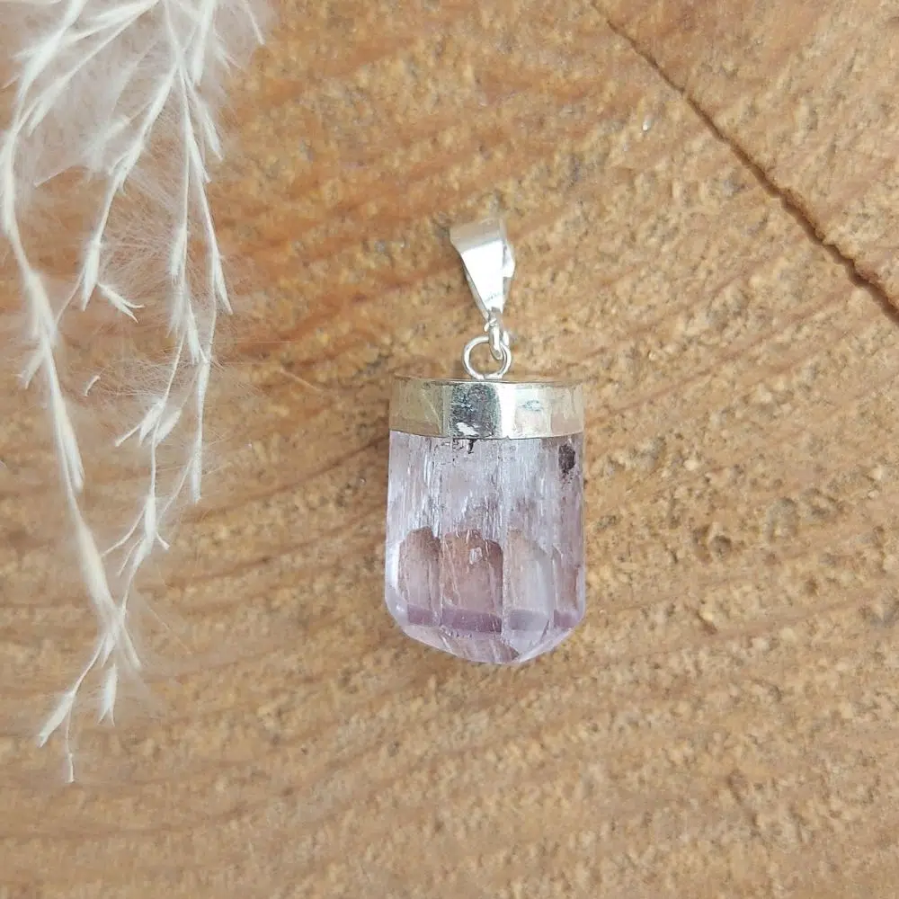Dieser wunderschöne Kunzit Anhänger aus Rohstein und echtem Silber hilft dir dabei, deine Intuition zu stärken.