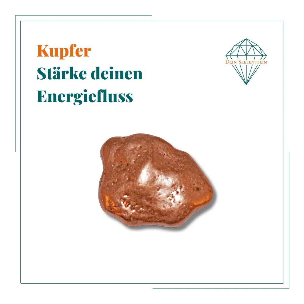 Kupfer steht für Vitalität, Kraft und Ausdauer. Es regt den Fluss der Lebensenergie im Körper an und fördert so die körperliche Vitalität und das Wohlbefinden. Kupfer symbolisiert Verwandlung und Umwandlung. Es fördert inneres Wachstum und spirituelle Entwicklung.