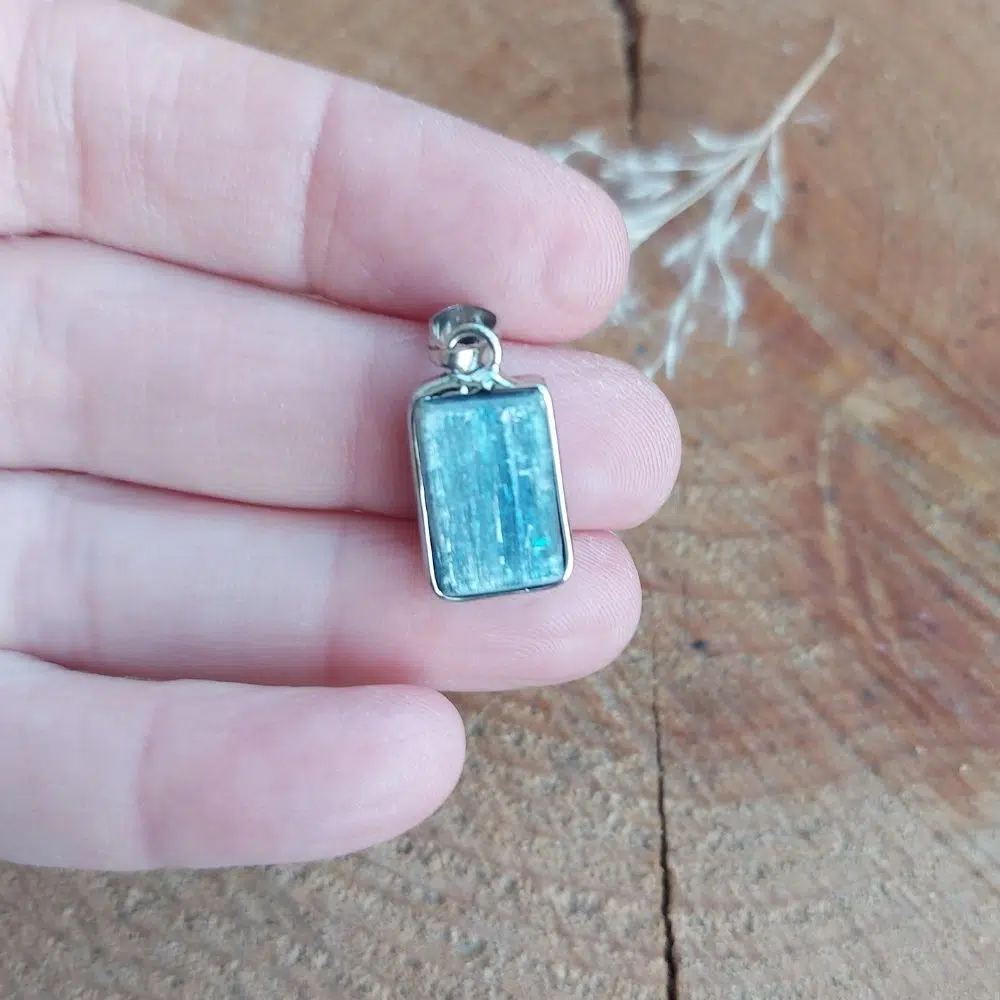 Dieser kraftvolle, blaue Kyanit rechteckig Anhänger (versilbert) unterstützt dich bei der Kommunikation mit der spirituellen Welt.