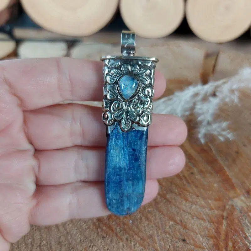 Dieser kraftvolle, große, blaue Kyanit Anhänger wurde in Nepal mit echtem Silber hergestellt. Er ist ein ausgezeichneter Begleiter und unterstützt dich bei deiner klaren und starken Kommunikation.