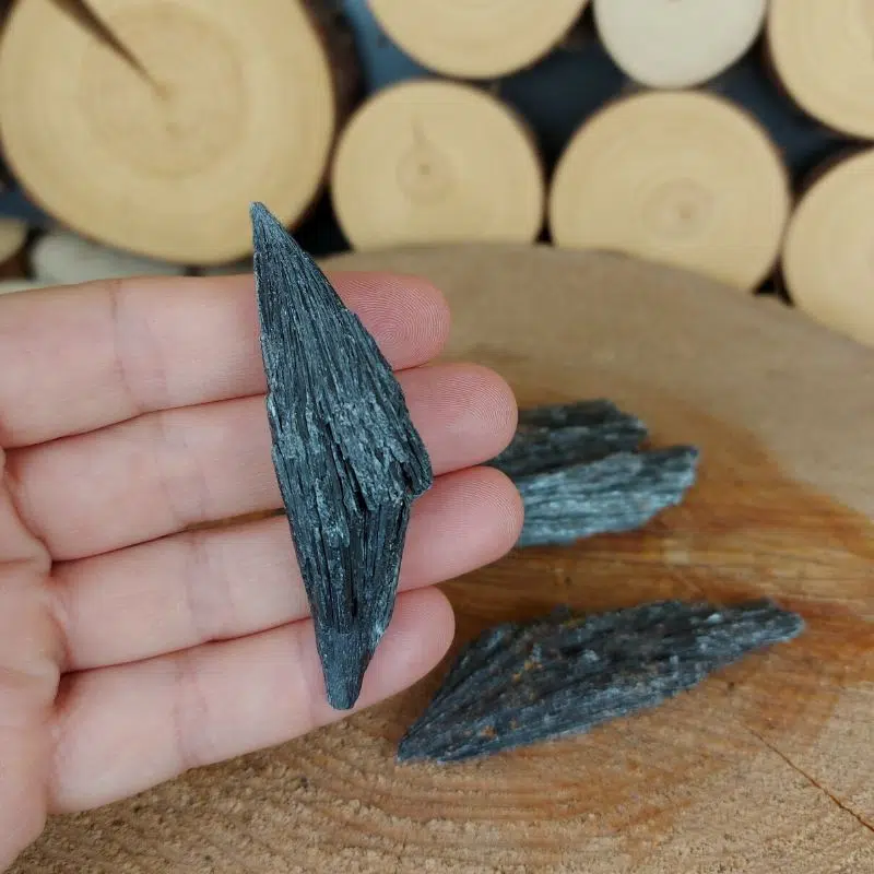 Schwarzer Kyanit ist ein ausgezeichneter Stein für Meditation und eine starke spirituelle Verbindung. Es ist erdend und energetisierend zugleich. Schwarzer Kyanit hilft dabei, alle unerwünschten Energien wegzufegen. Sehr förderlich, wenn etwas loszulassen ist, das einem nicht mehr dient. Bei der Meditation erdet er und kann Verständnis über vergangene Leben bzw. deren Aufgaben anregen.