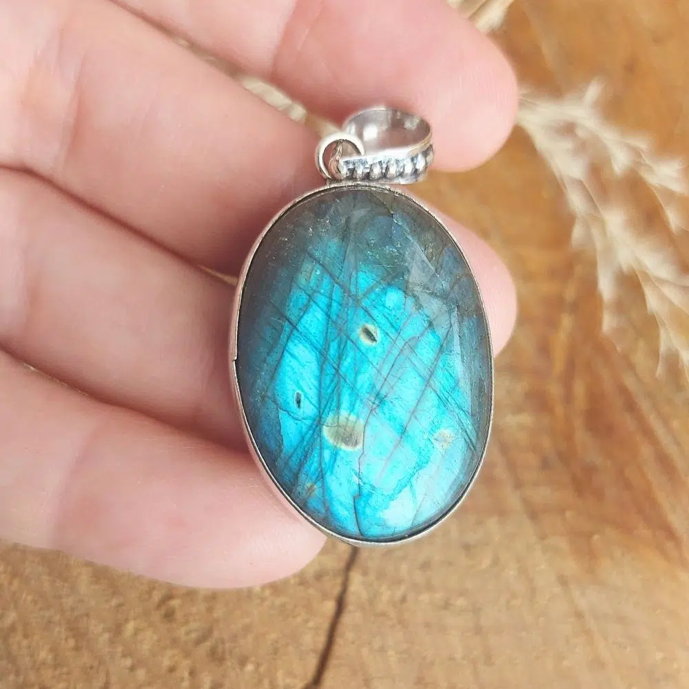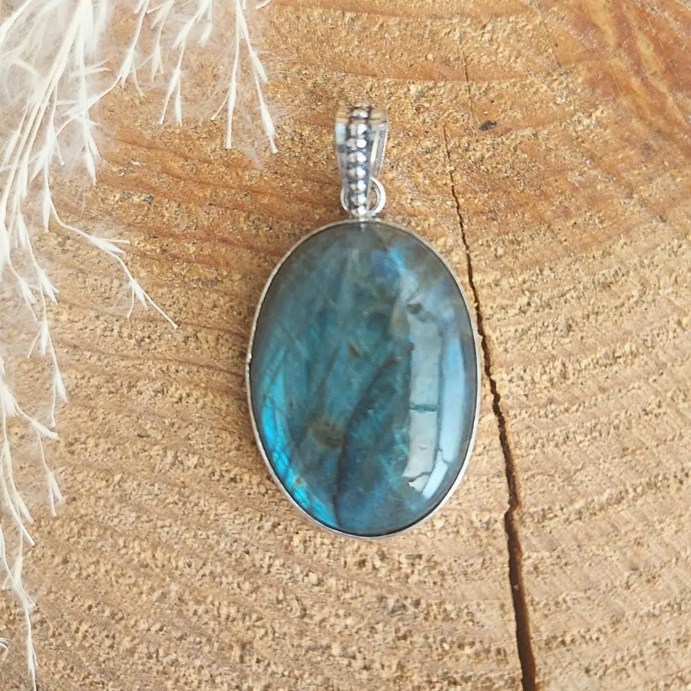 Dieser kraftvolle ovale Labradorit Anhänger verstärkt deine übersinnlichen Fähigkeiten.