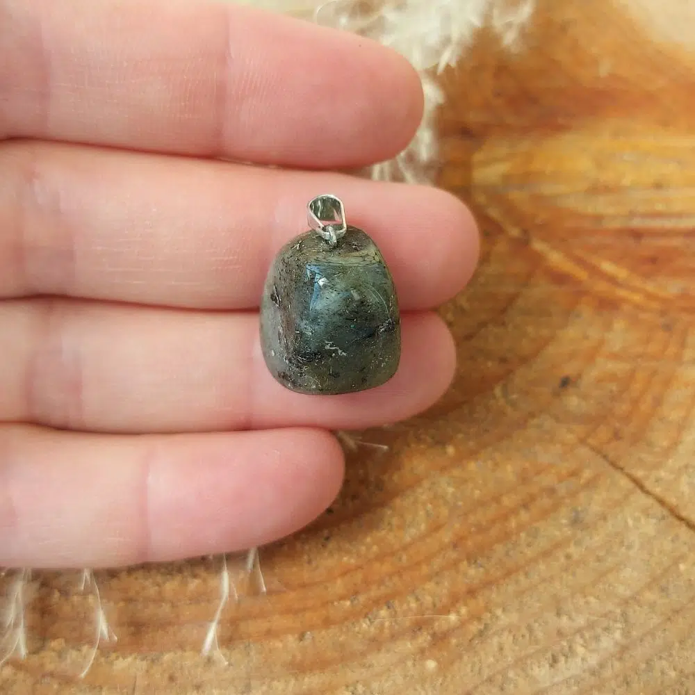 Der graue Labradorit Anhänger Trommelstein begleitet dich bei deinem Veränderungsprozess.
