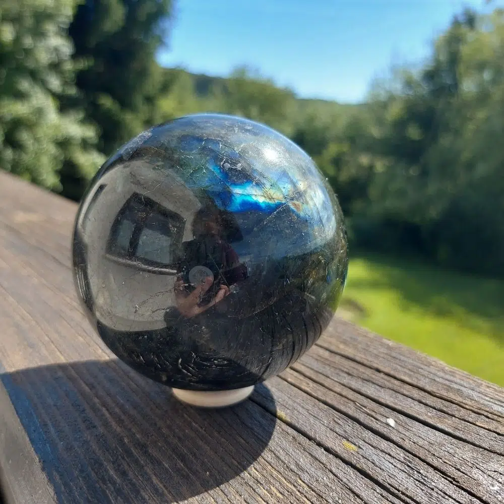 Diese einzigartige Labradorit Kugel unterstützt dich in Zeiten der Veränderung – dein ganz persönlicher Begleiter wartet schon auf dich!
