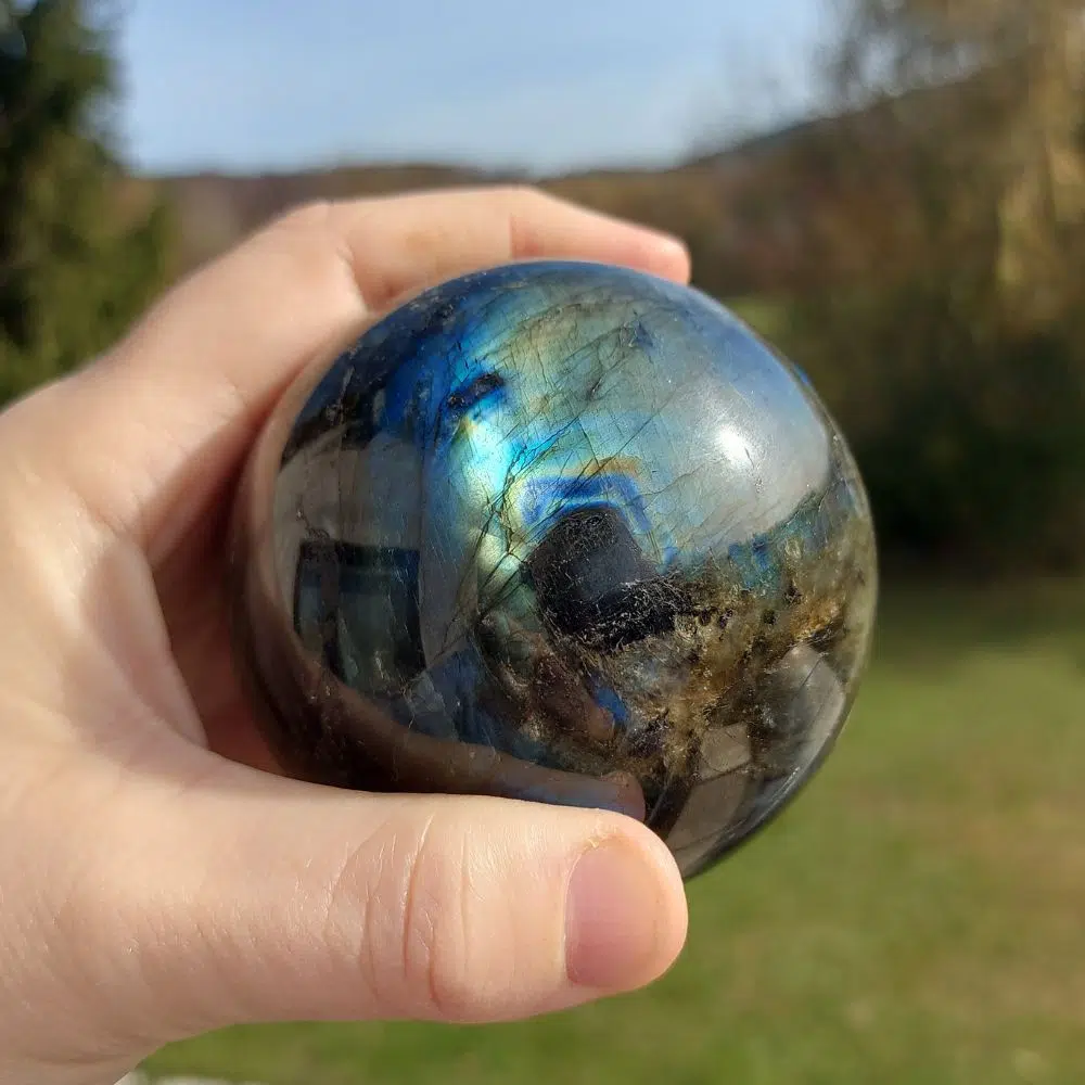 Diese einzigartige Labradorit Kugel unterstützt dich in Zeiten der Veränderung – dein ganz persönlicher Begleiter wartet schon auf dich!