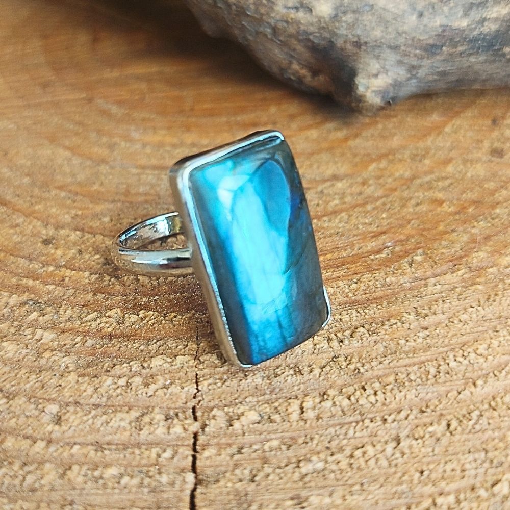 Dieser wunderschöne rechteckige Labradorit Ring hilft dir bei Veränderungsprozessen und bietet energetischen Schutz.