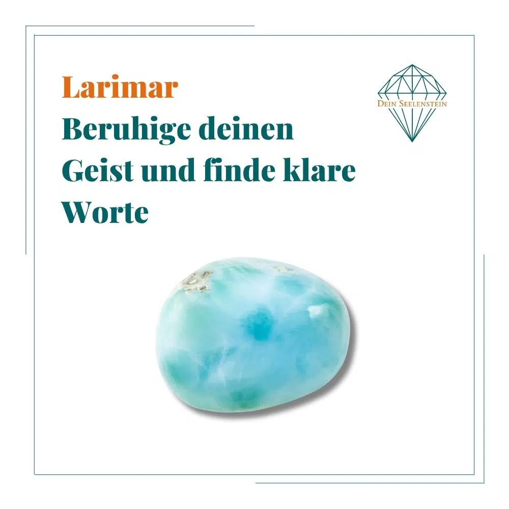 Larimar ist ein stark beruhigender Stein, der nur in der Dominikanischen Republik vorkommt. Er strahlt eine beruhigende und gelassene Energie aus. Larimar kann helfen, Ängste zu beruhigen und Stress und andere negative Emotionen abzubauen. Er reinigt und heilt emotional. Larimar gibt ein Gefühl von Stärke und Energie. Er vermittelt ein Gefühl des Wohlbefindens und der Gelassenheit.