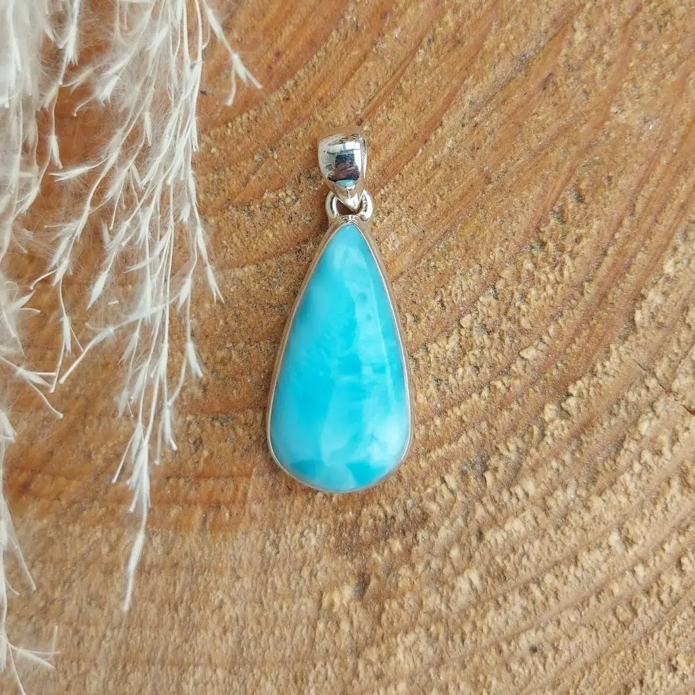 Larimar ist ein stark beruhigender Stein, der nur in der Dominikanischen Republik vorkommt. Er strahlt eine beruhigende und gelassene Energie aus. Larimar kann helfen, Ängste zu beruhigen und Stress und andere negative Emotionen abzubauen. Er reinigt und heilt emotional. Larimar gibt ein Gefühl von Stärke und Energie. Er vermittelt ein Gefühl des Wohlbefindens und der Gelassenheit.