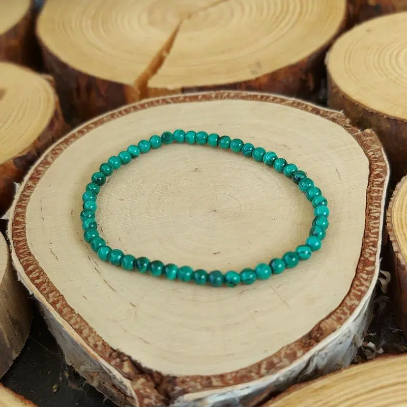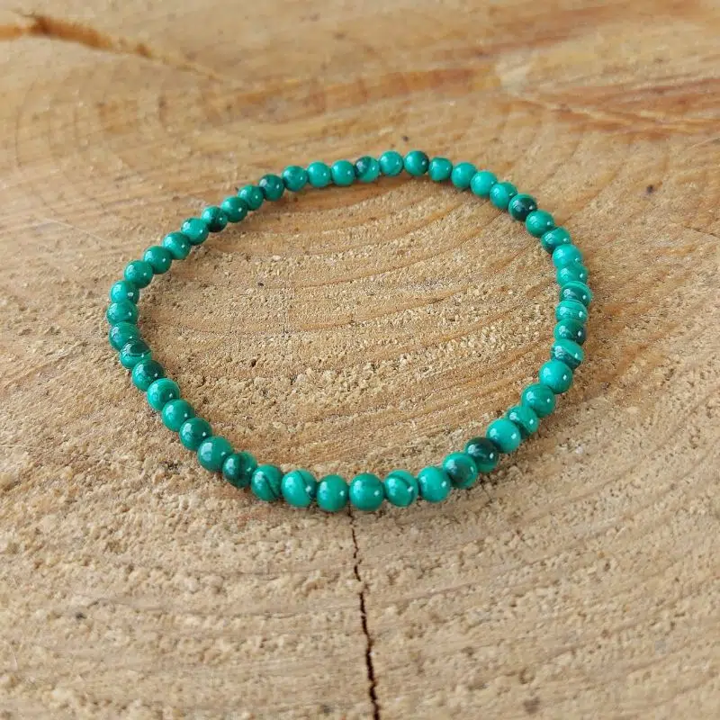 Das Malachit Perlenarmband (4 mm) ist dehnbar und unterstützt dich bei Veränderungen und Neuanfängen in deinem Leben.