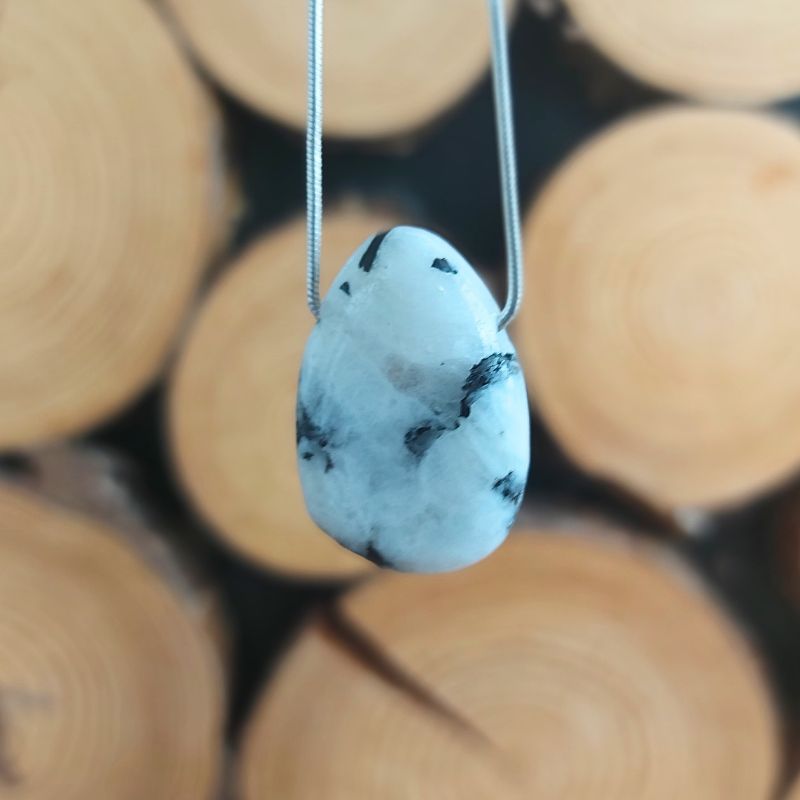 Seelenstein-Anhänger-Mondstein-Trommelstein-Tropfen-Loch