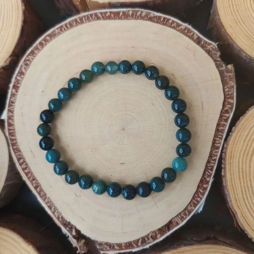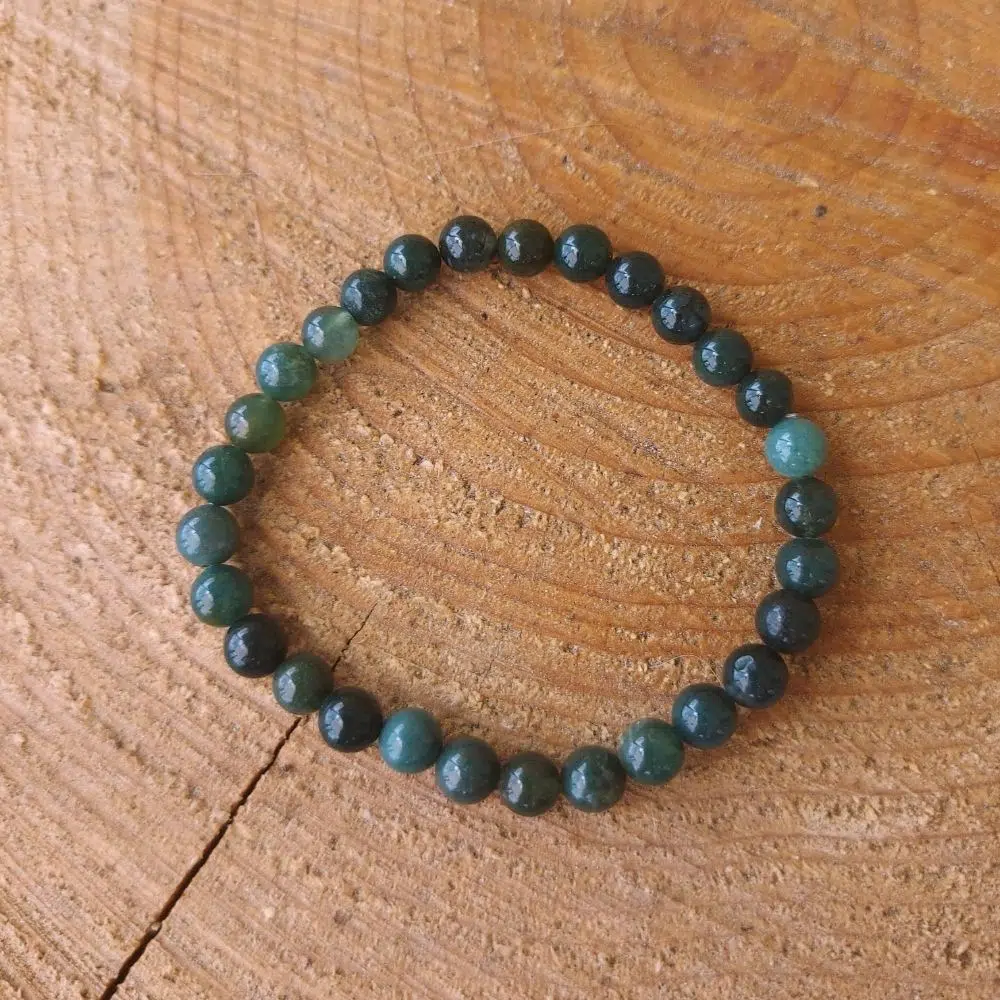 Dieses wunderschön dunkelgrüne Moos Achat Perlenarmband (6 mm) ist dehnbar und unterstützt deinen Neuanfang!